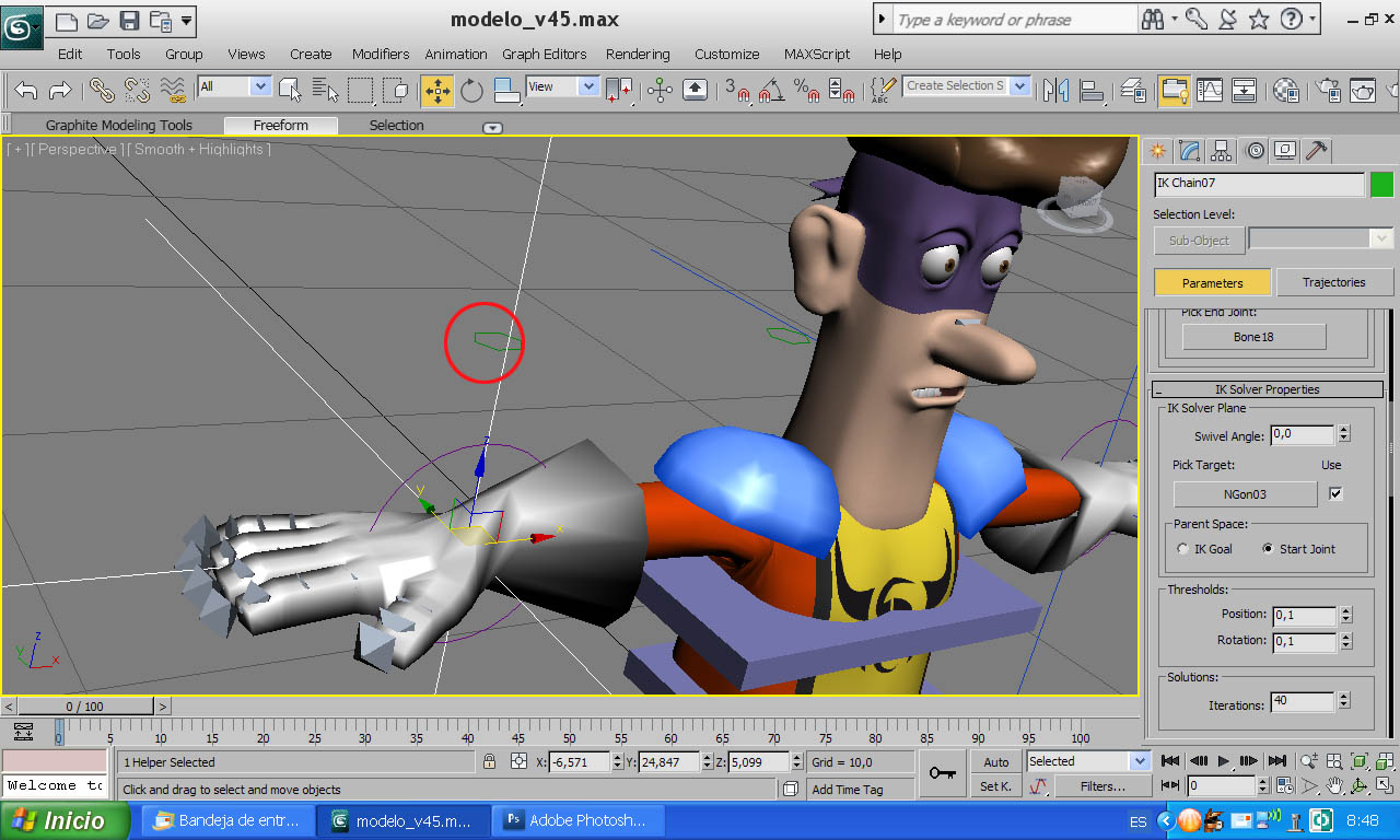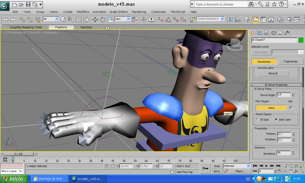 Por qué se retuerce el antebrazo al usar IK en 3ds Max