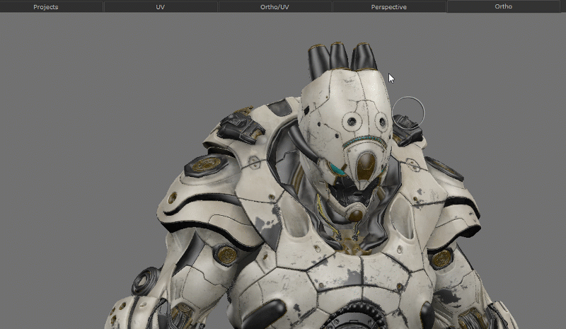 La capacidad de usar las herramientas de selección de Mari para asignar materiales a la ubicación correcta basada en el conjunto de caras de USD. Los artistas pueden utilizar las herramientas de grupo de selección intuitivas de Mari para asignar materiales a áreas específicas de su modelo y asegurarse de que permanezcan asignados correctamente dentro del aspecto USD exportado.
