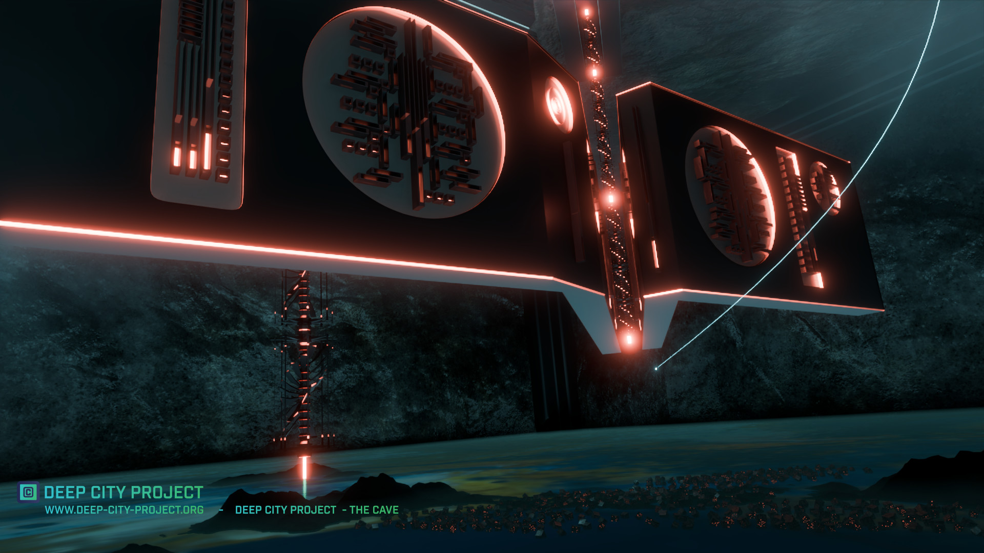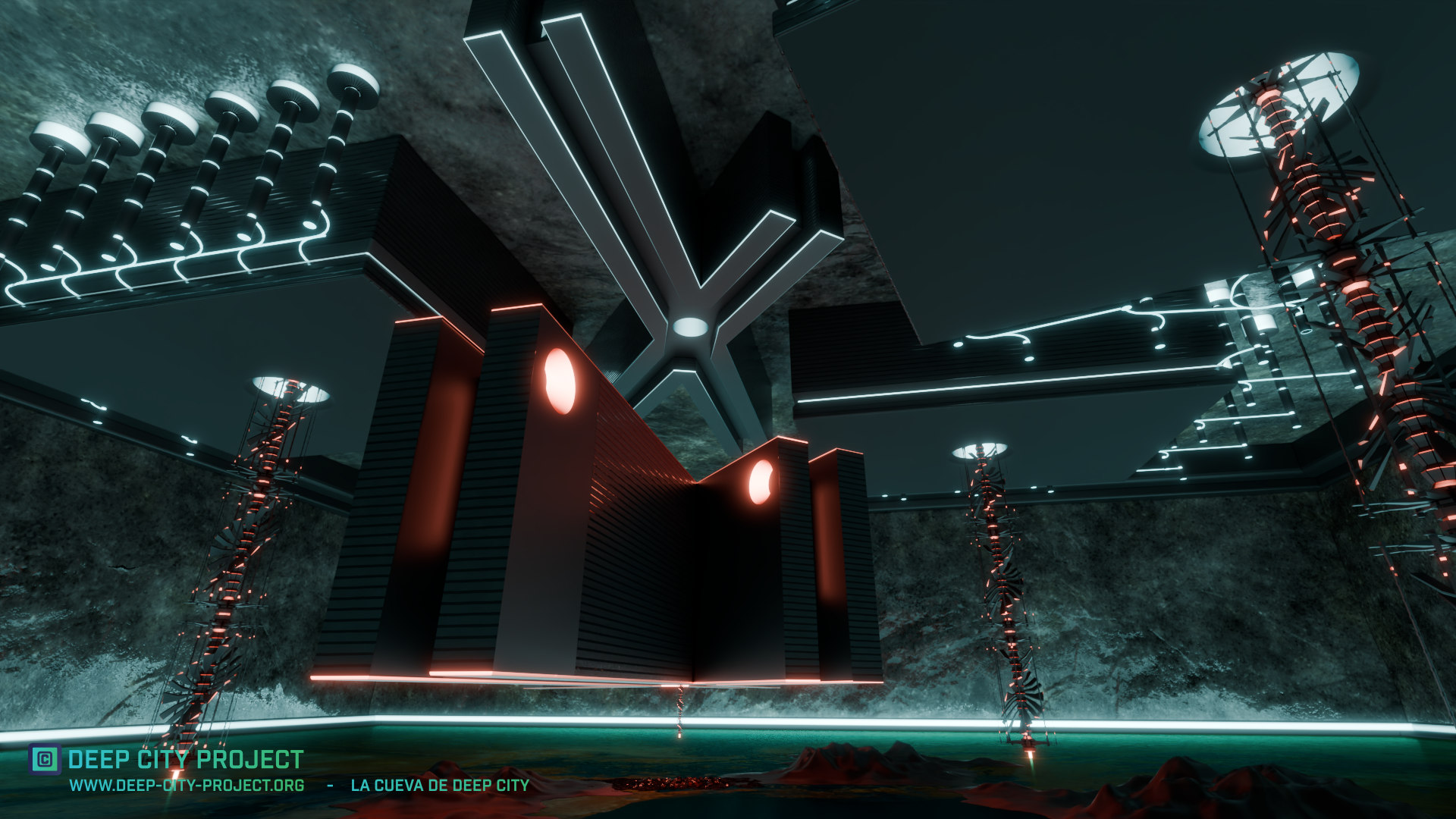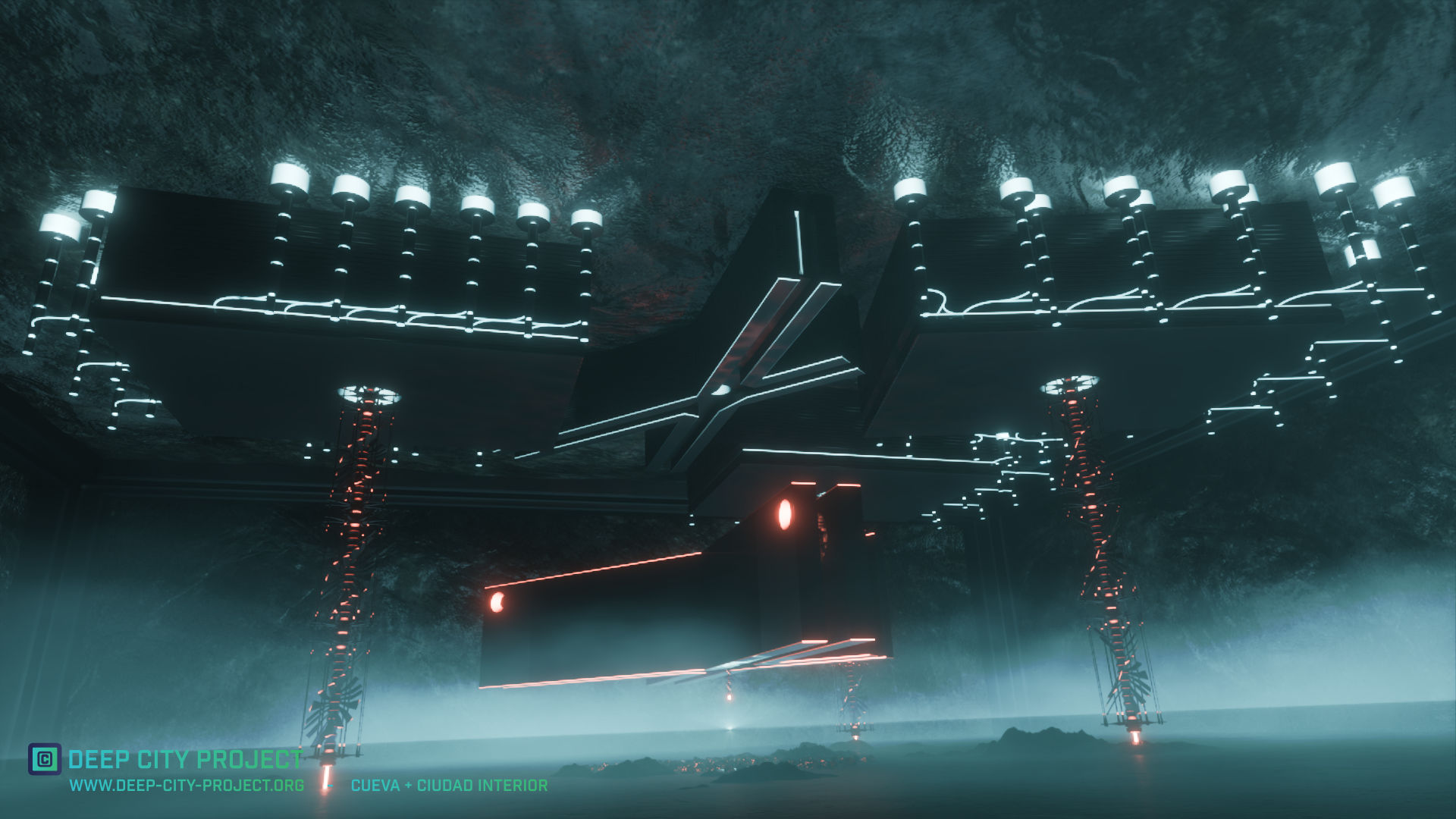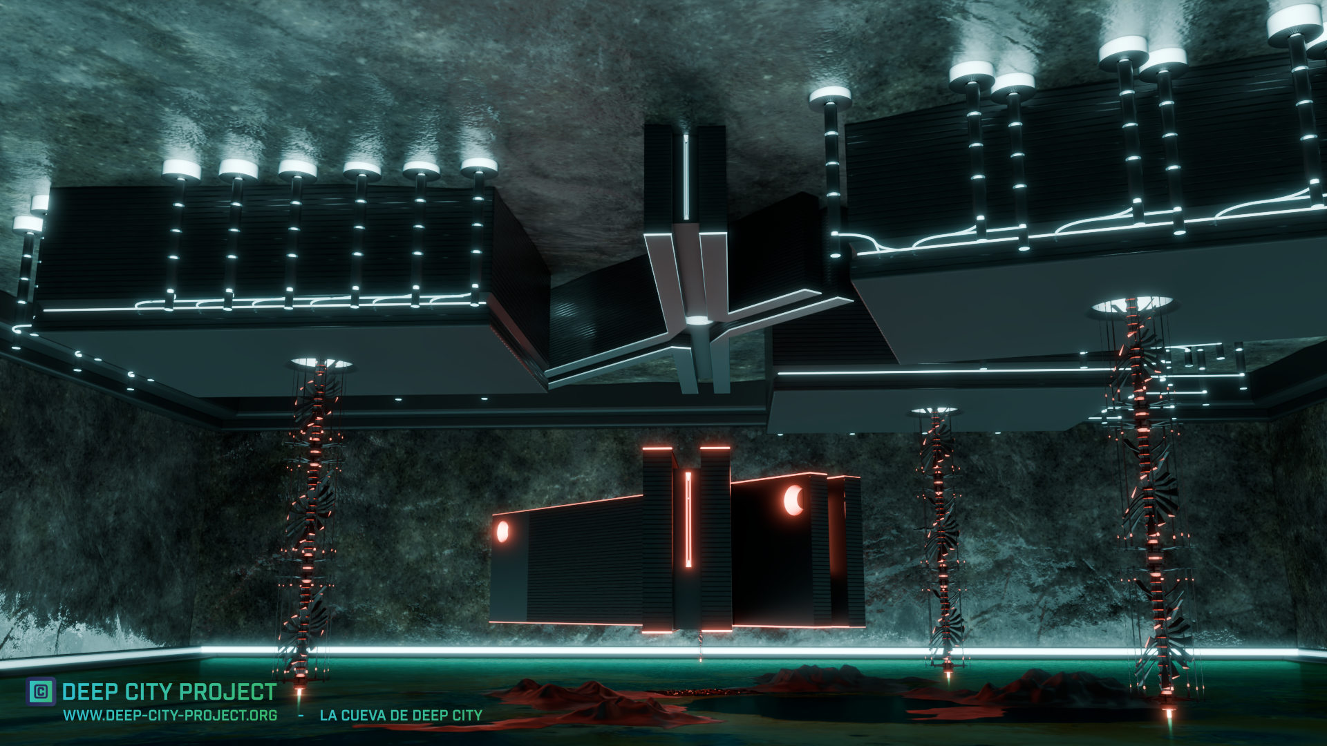 A la ciudad interior de Deep City se entra por esos accesos circulares rojos, porque la ciudad interior es esa mole que flota en el centro de la cueva. Allí transcurre el 70% de la historia.
