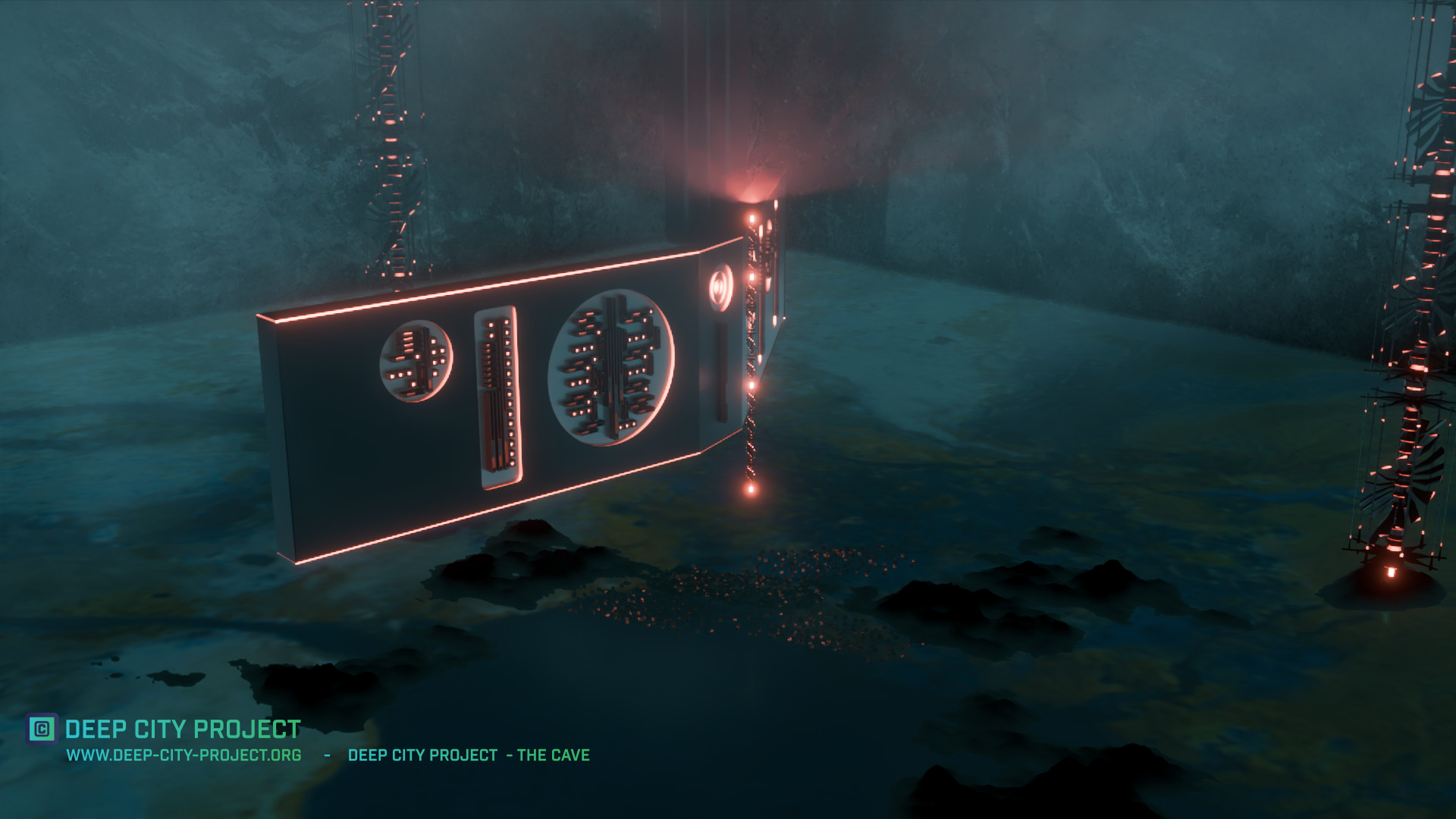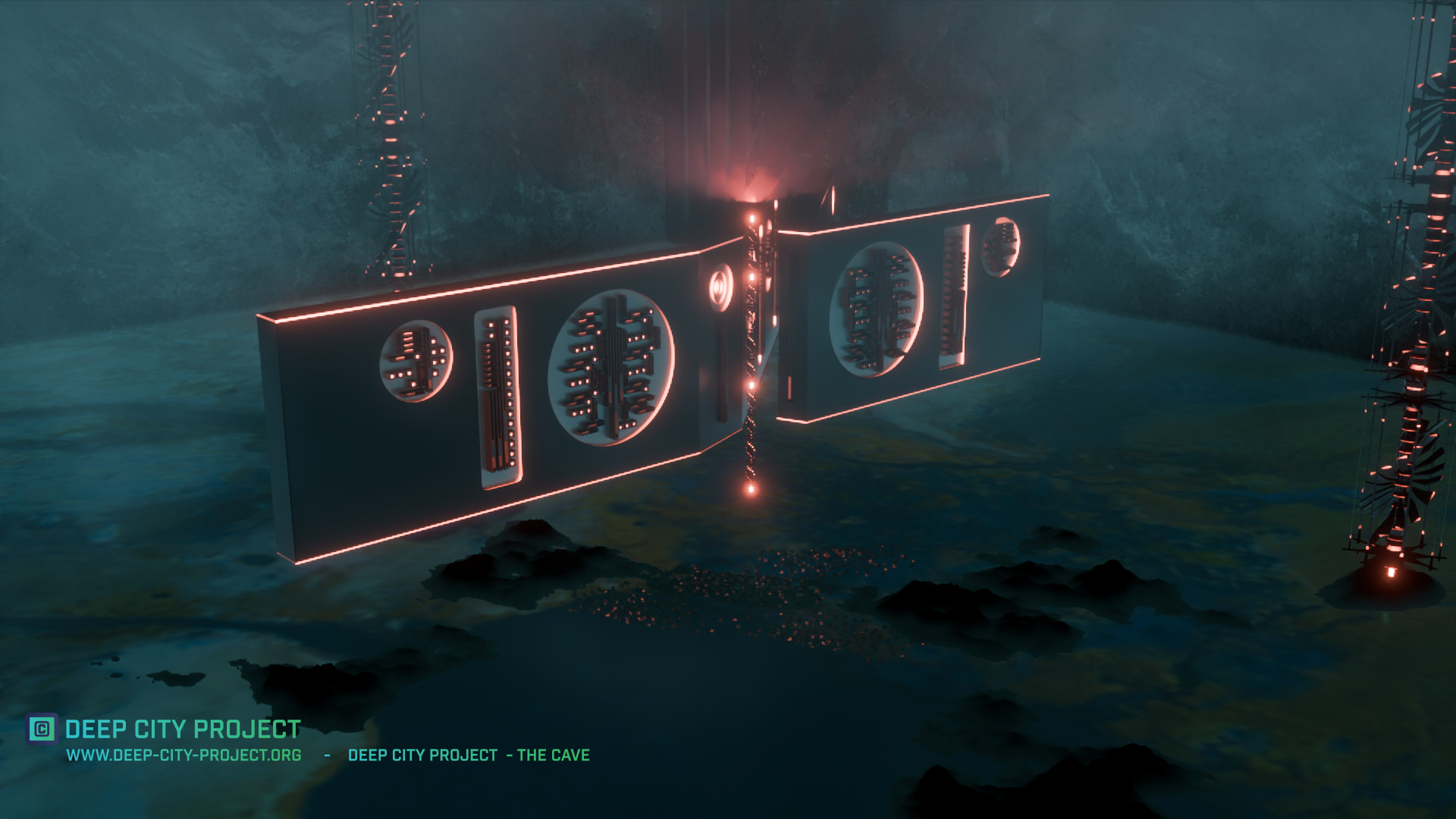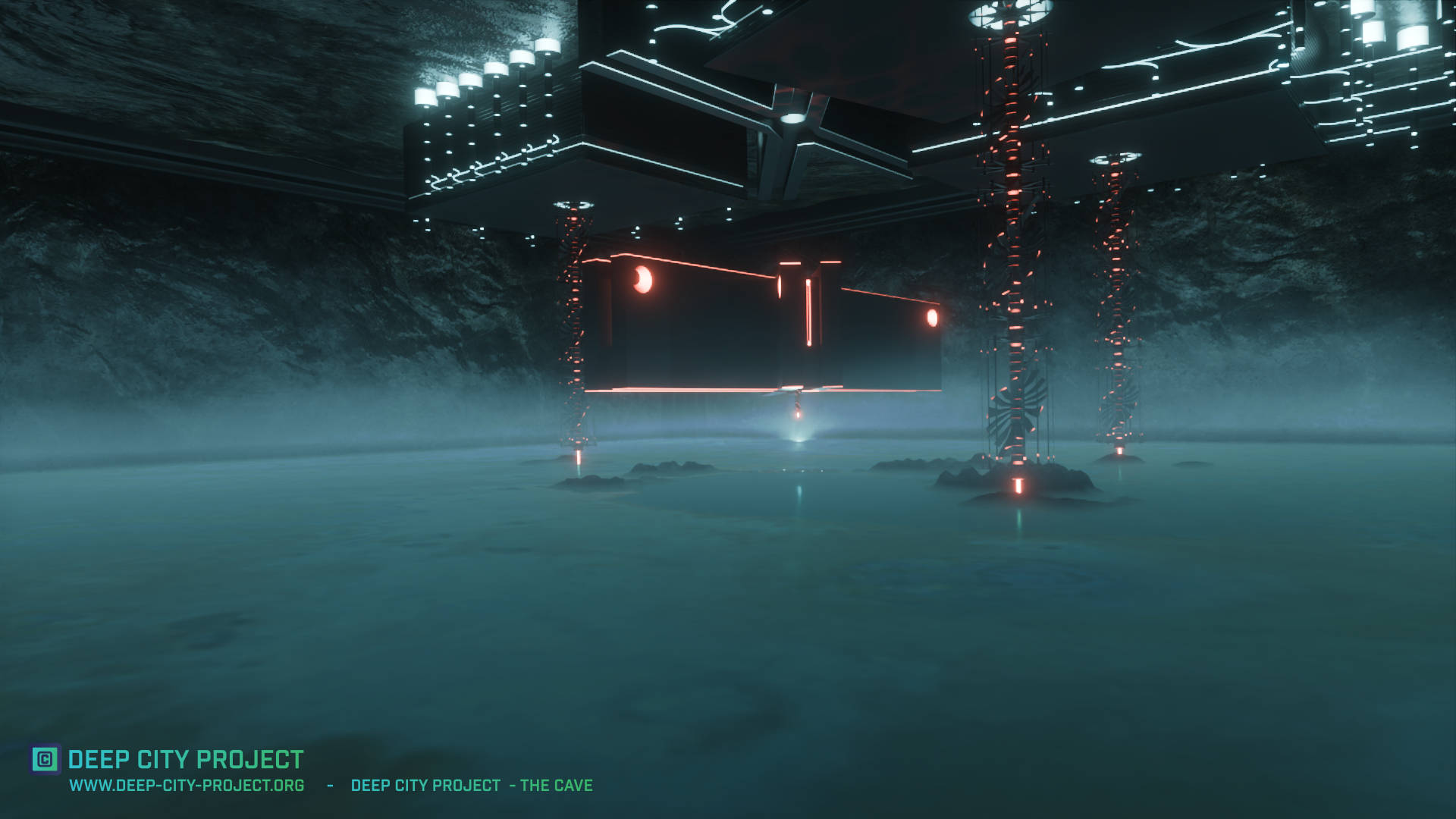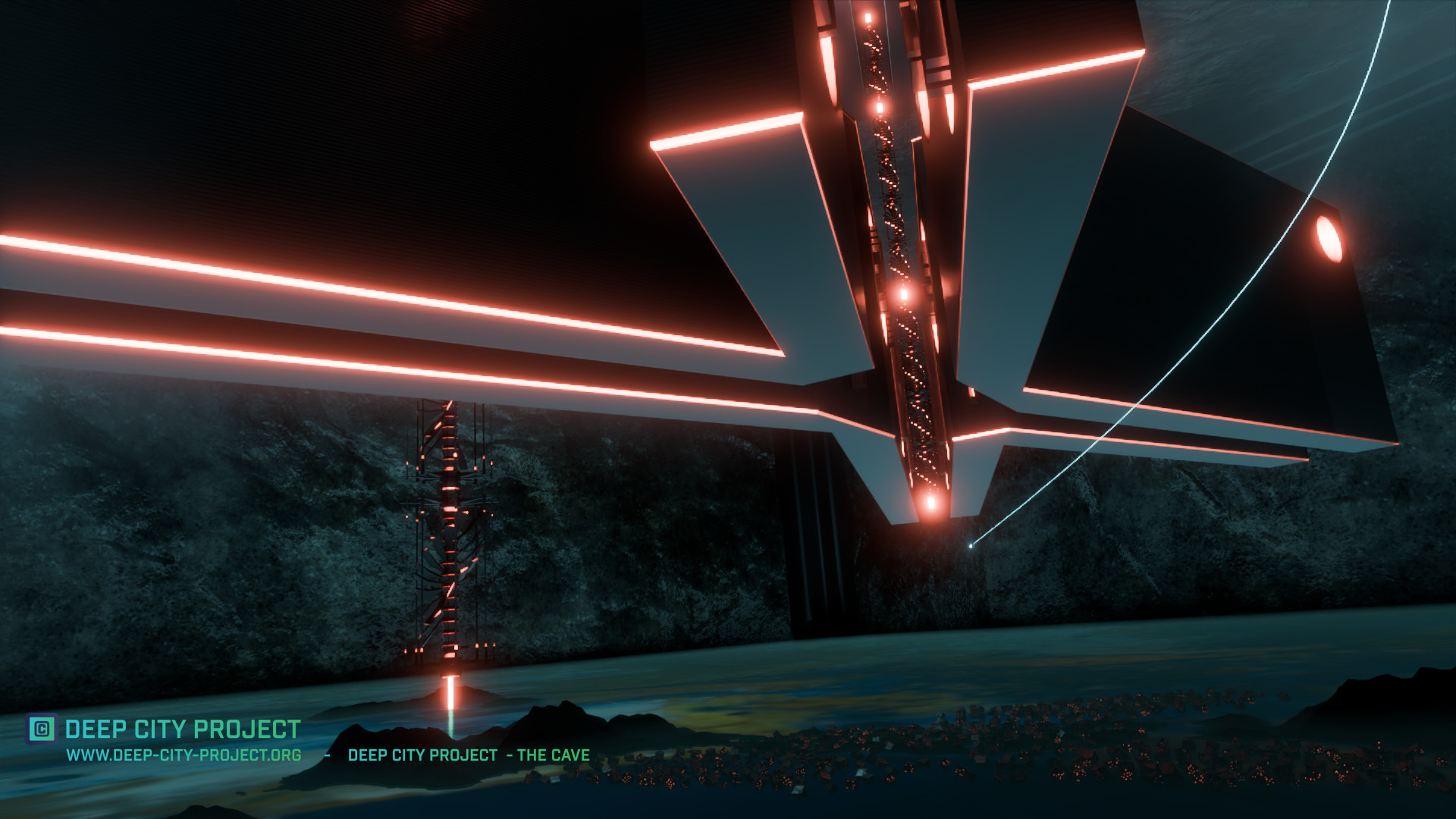 A la ciudad interior de Deep City se entra por esos accesos circulares rojos, porque la ciudad interior es esa mole que flota en el centro de la cueva. Allí transcurre el 70% de la historia.