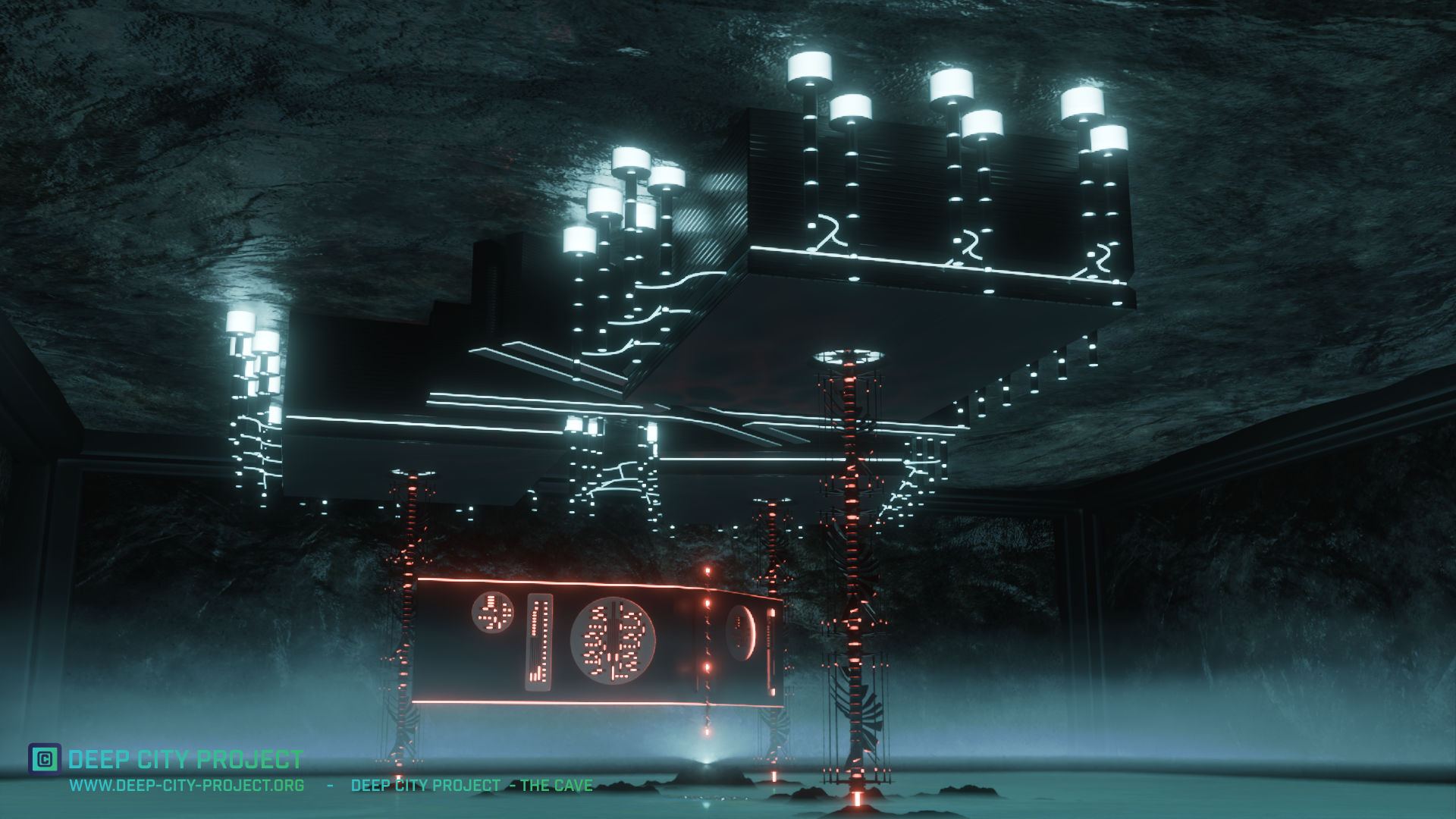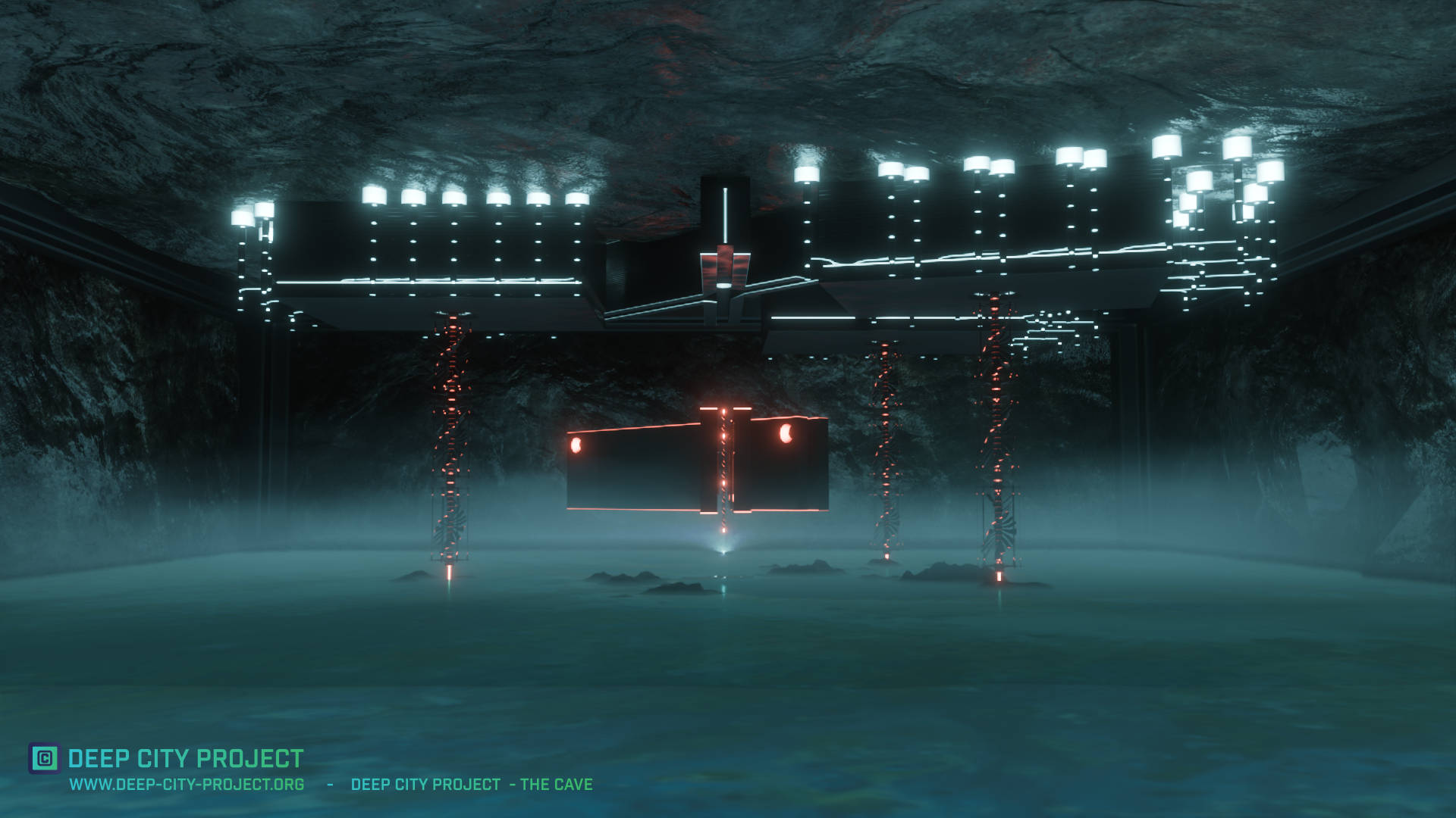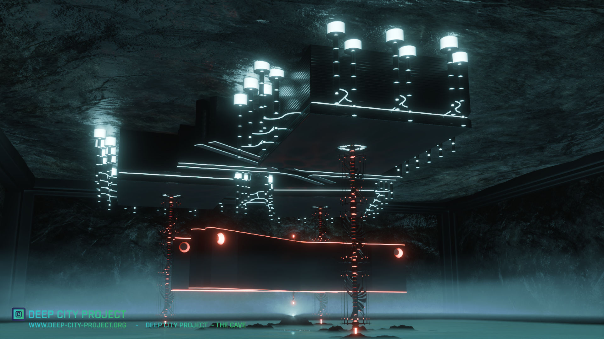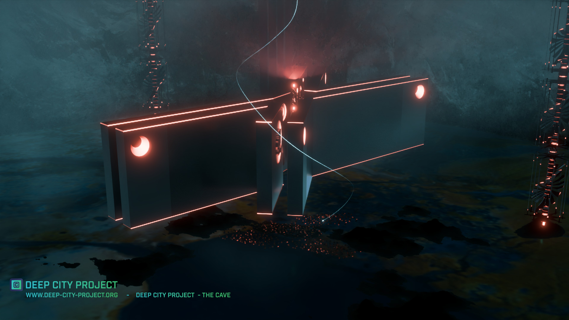 A la ciudad interior de Deep City se entra por esos accesos circulares rojos, porque la ciudad interior es esa mole que flota en el centro de la cueva. Allí transcurre el 70% de la historia.
