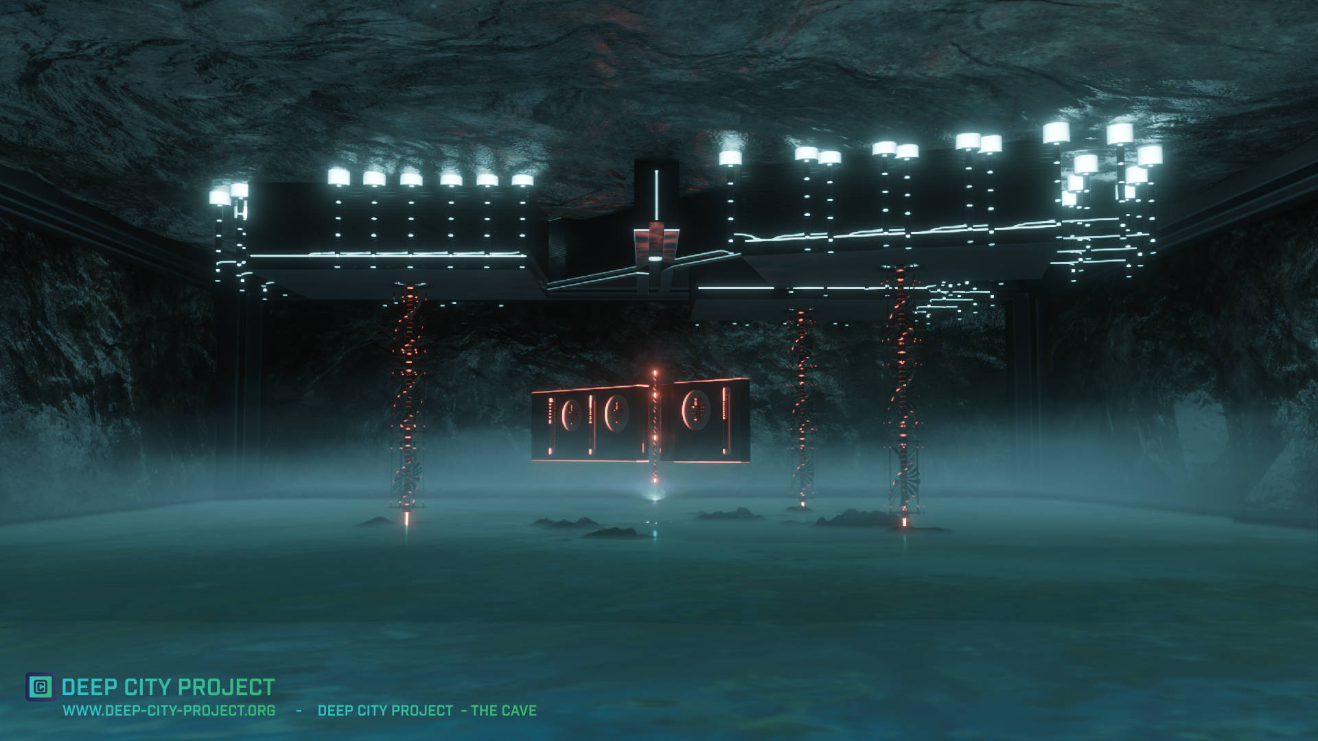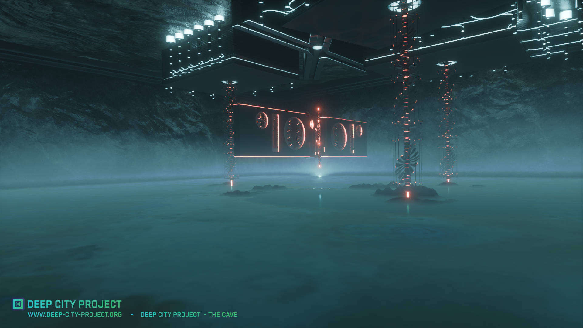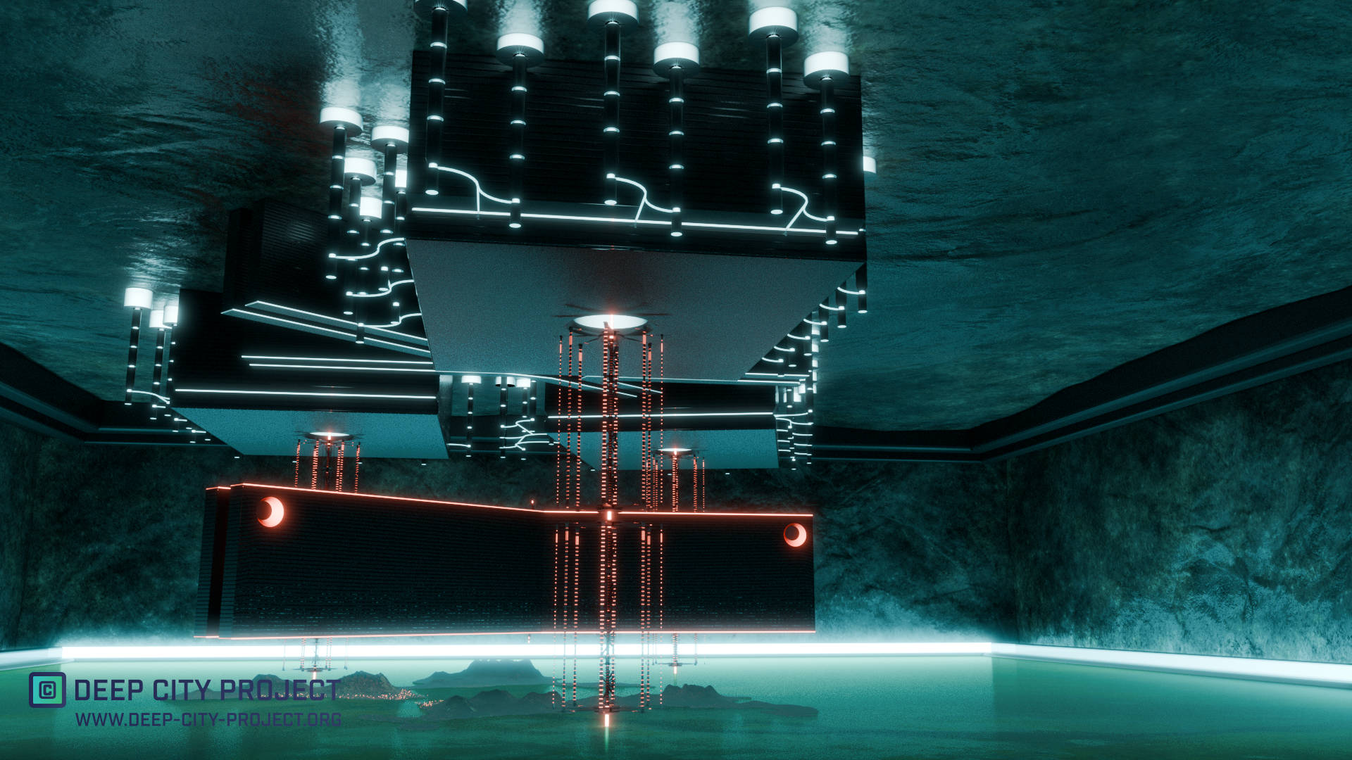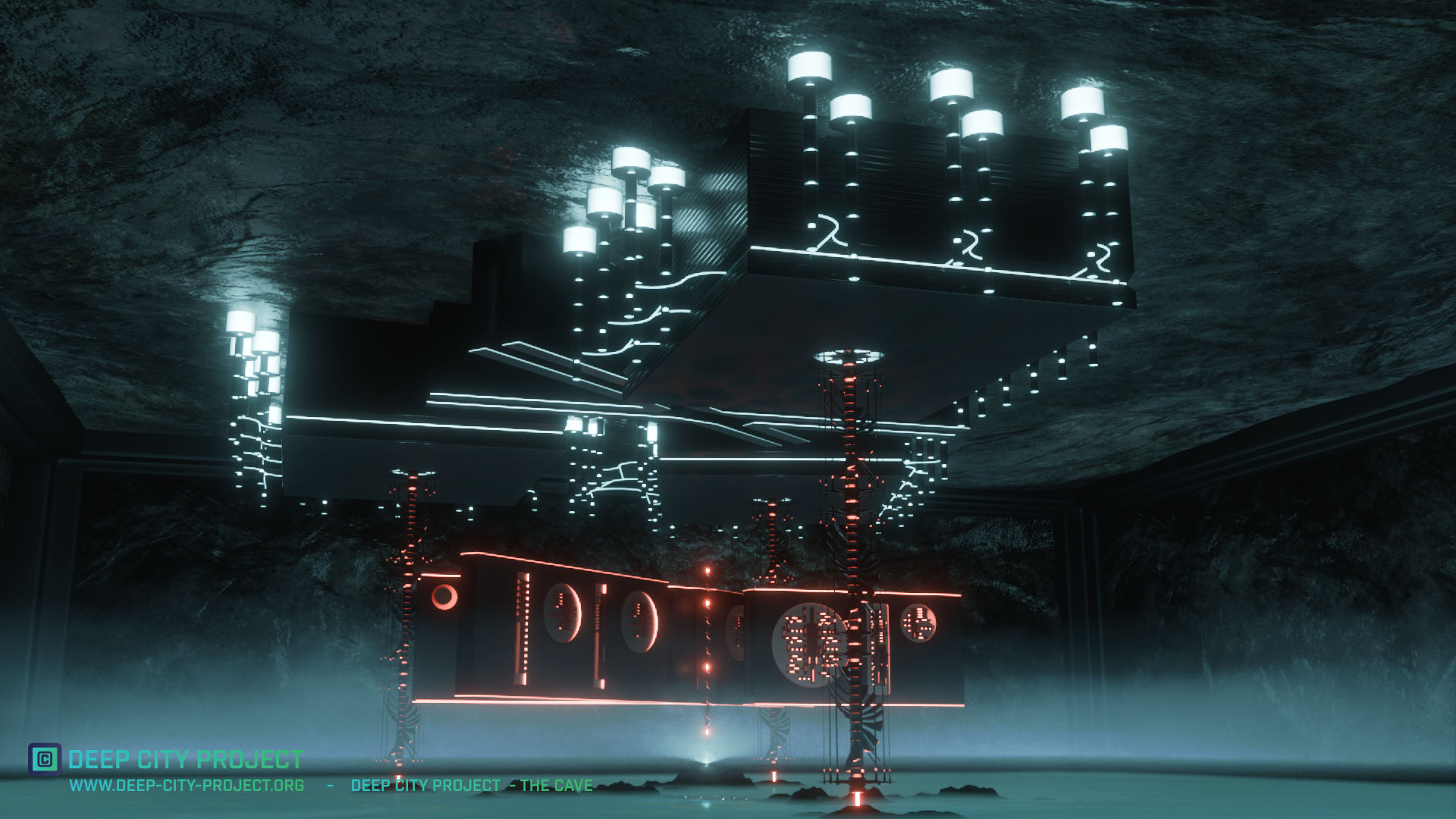 A la ciudad interior de Deep City se entra por esos accesos circulares rojos, porque la ciudad interior es esa mole que flota en el centro de la cueva. Allí transcurre el 70% de la historia.