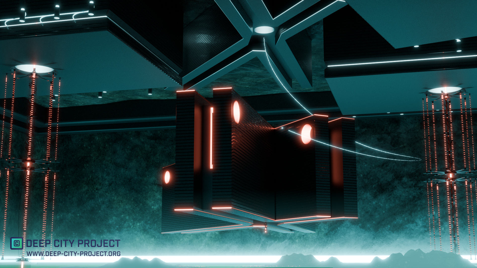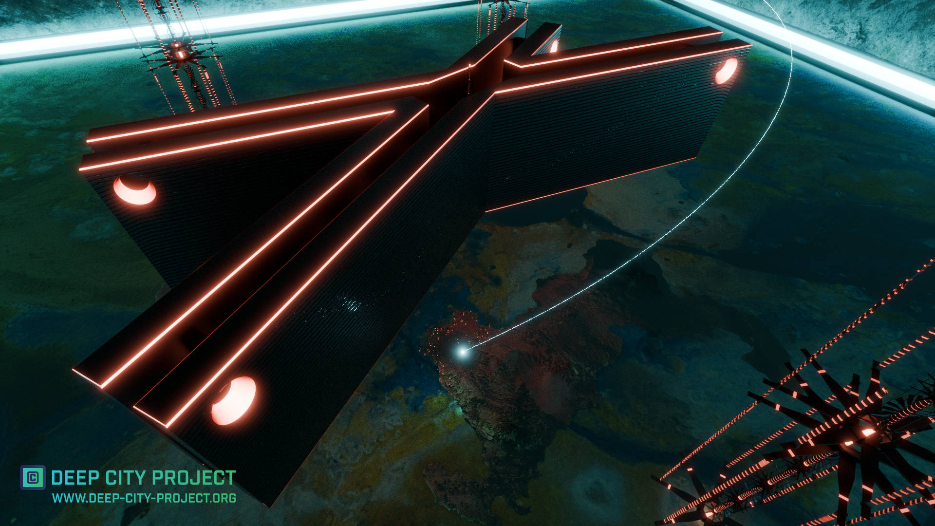 Las curvas del recorrido de la nave sólo son herramienta para usarlas como path de las cámaras. En Deep City las naves no dejan estelas de fuego, humo, láser o energía, ni falta que les hace. Eso es en las pelis ci-fi serias. Esto es una chaladura sin más, para entretenernos.