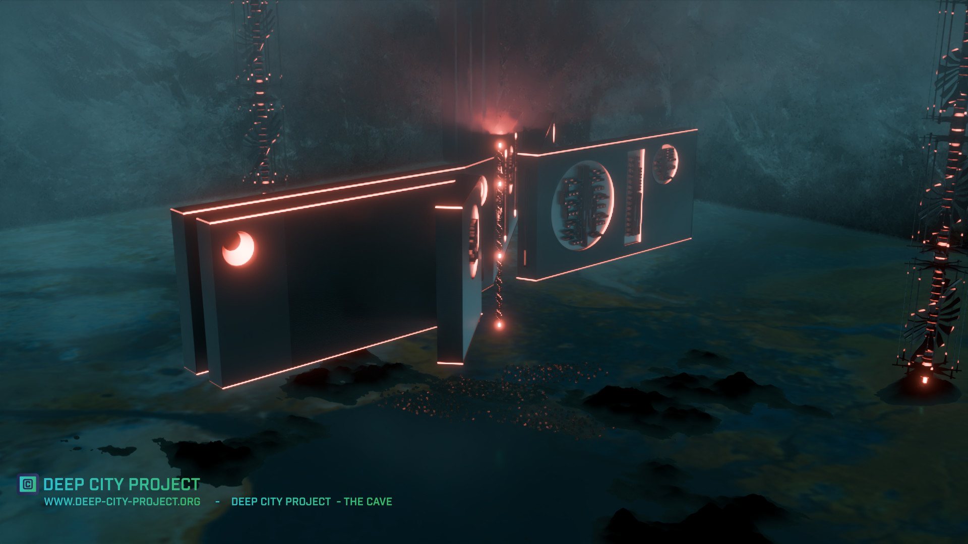 La entrada a Deep City. Aquí hubo un malentendido con Mars, pero ya lo dejo así. Veis que la entrada parece un ojo, pero al verla Mars me riñó y me dijo que él se refería a que la entrada pareciera un ojete.
