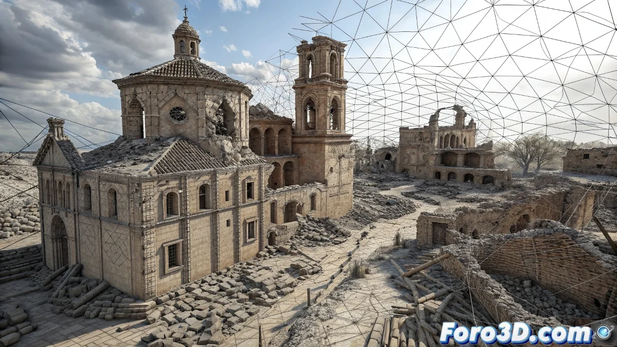 Una recreación atmosférica de Belchite en Nuke que combina el realismo histórico de sus ruinas con los elementos paranormales de sus leyendas, transmitiendo tanto memoria histórica como misterio sobrenatural.