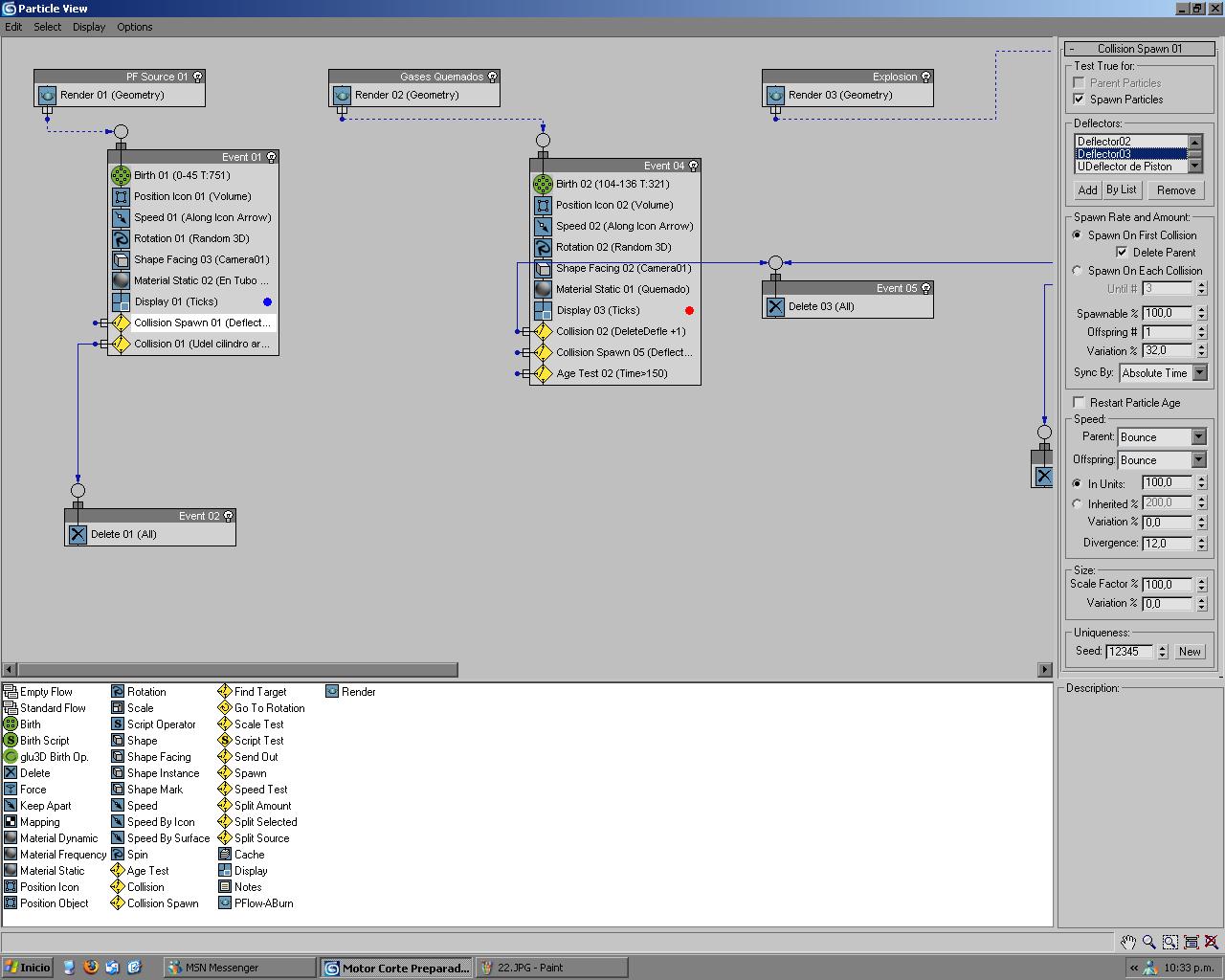 Hola qué tal, estoy haciendo una animación en Particle Flow y me surgen varios problemas, que no he podido resolver como, por ejemplo, este que está detallado en las imágenes.