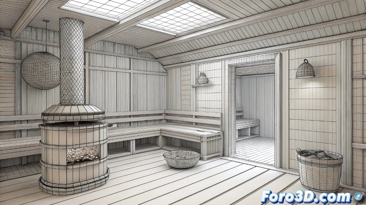 El modelado puede comenzar con primitivas básicas para la estructura de la sauna, ajustando proporciones y detalles arquitectónicos. El horno de piedras puede modelarse con esferas y deformadores, aplicando texturas PBR para realismo en madera, piedra y vapor.