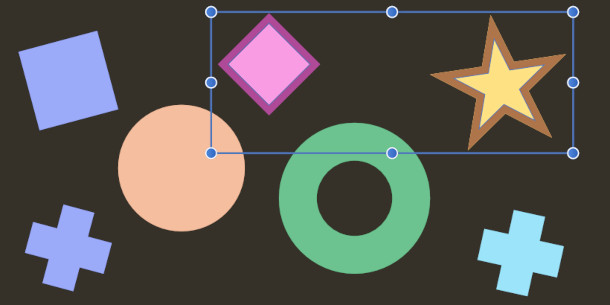 Este último selecciona todos los objetos que coinciden con un atributo del objeto seleccionado actualmente, por ejemplo, aquellos con el mismo color de relleno o trazo, grosor de trazo o modo de fusión.