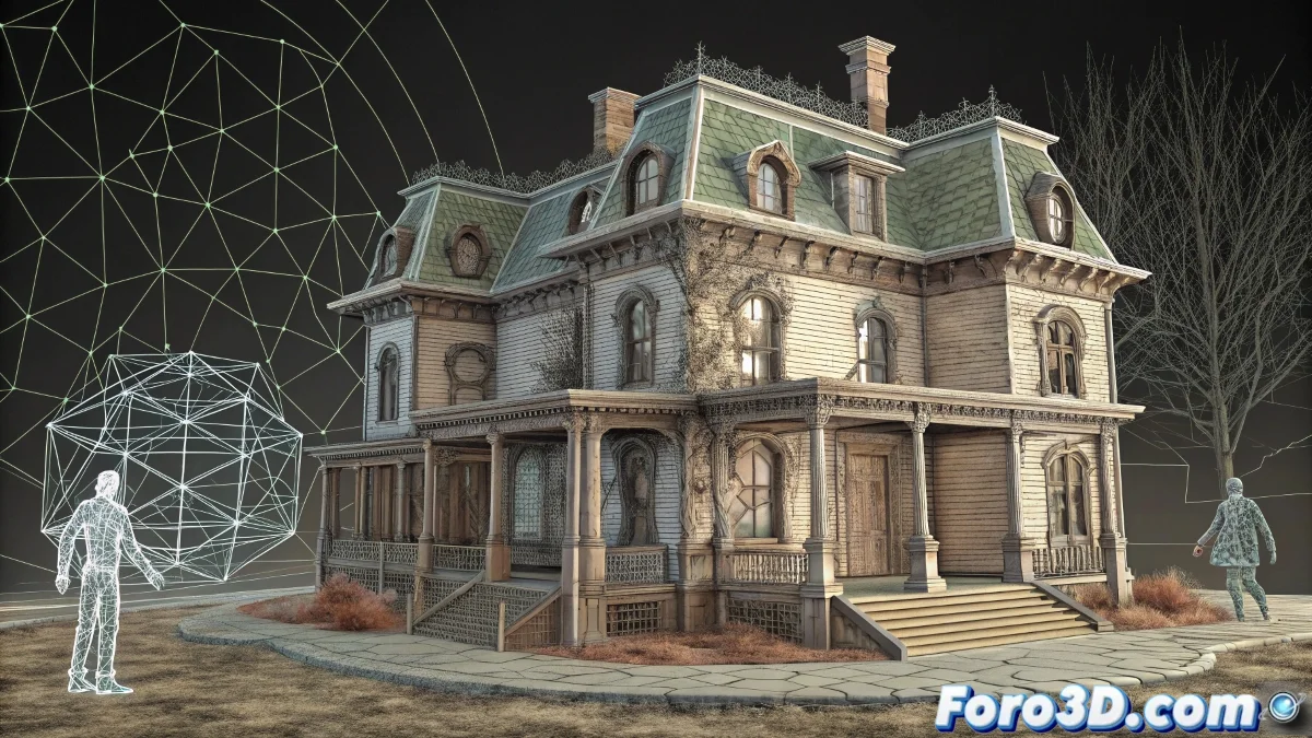 • Utiliza keyframes para controlar la posición y el enfoque de la cámara, destacando la mansión y el bosque circundante.