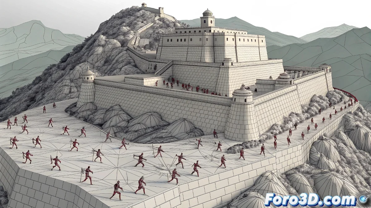 - Aplica profundidad de campo para resaltar elementos clave como murallas, torres o el terreno circundante.