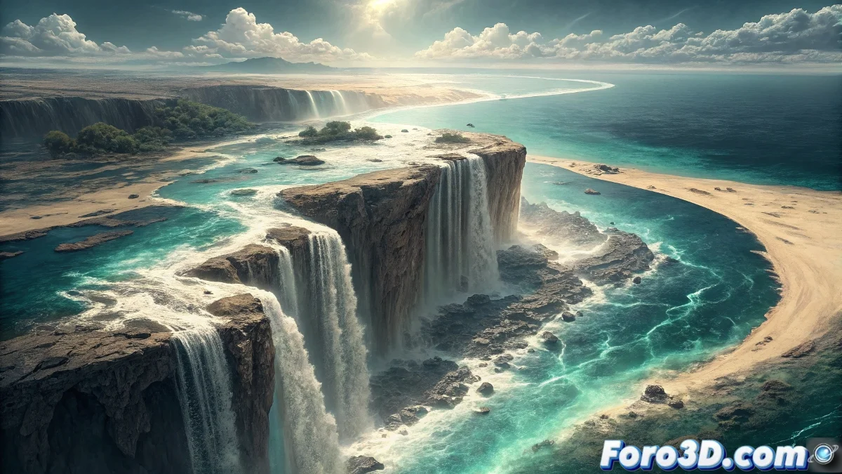 Las cascadas submarinas de Mauricio representan un fascinante fenómeno visual donde la arena y sedimentos crean la ilusión de una cascada submarina desde el aire. Esta formación geológica única en el Océano Índico aprovecha las pendientes del talud continental para engañar a la vista, simulando un flujo infinito hacia las profundidades. RealFlow permite recrear digitalmente este efecto mediante simulaciones de fluidos y partículas que imitan el movimiento natural de la arena bajo el agua.