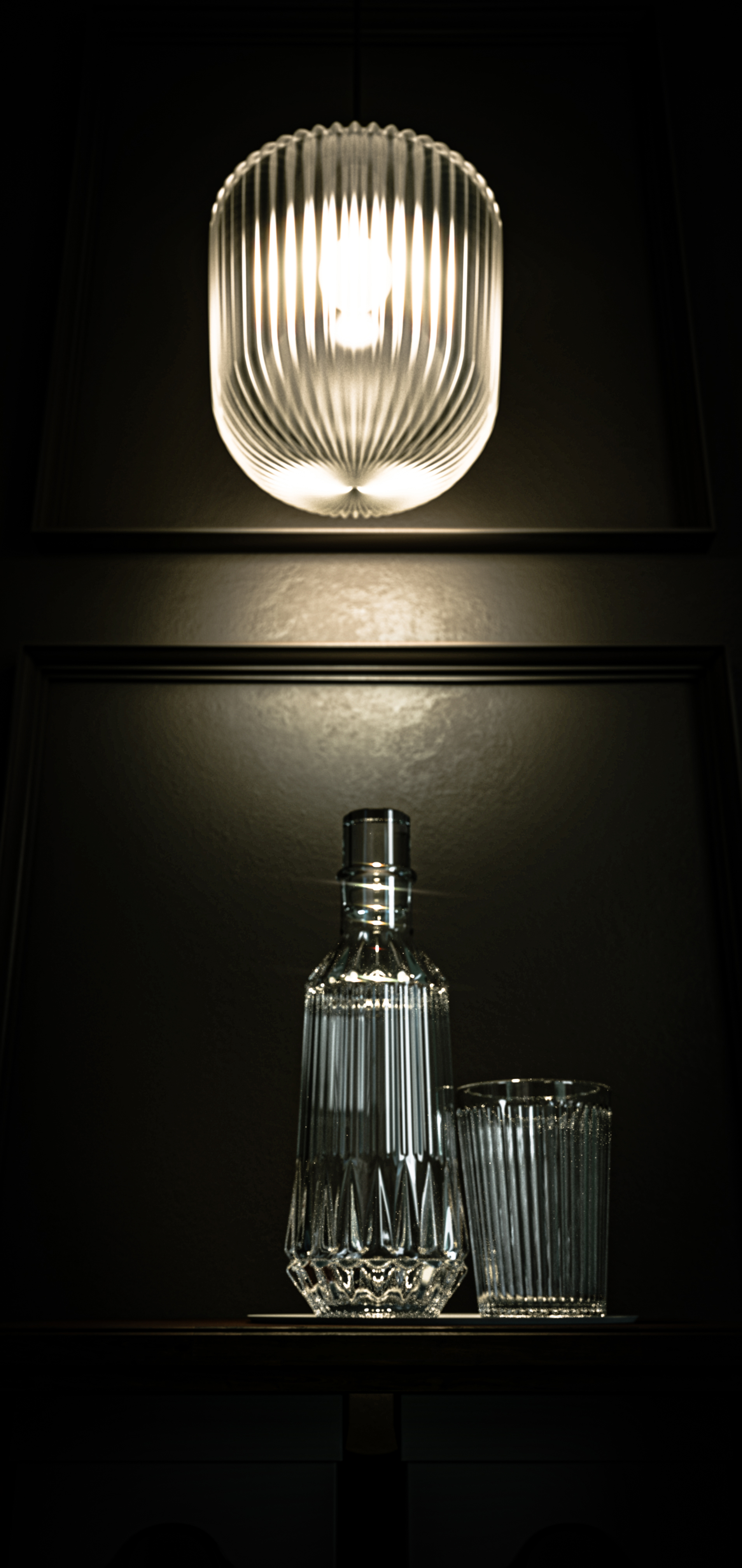 Muy realista, un cristal muy bonito, como crítica constructiva quizás algunos fireflies de más, yo le bajaria un poco el “Max Sample Instensity”.