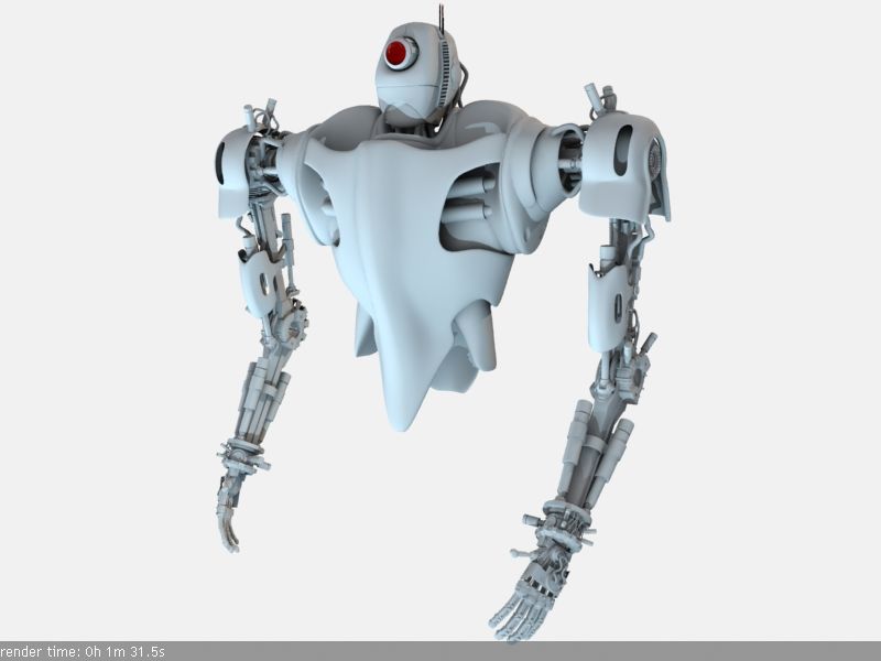 Vray, hay me has fallado. Donde este el final. (yo es que el Vray como que lo intente y vi que no). Tengo una idea para la cabeza, que a lo mejor puedes usar: más larga y 2 ojos, tipo bot-humanoide. Si la idea te interesa podrías intentarlo. Un saludo.