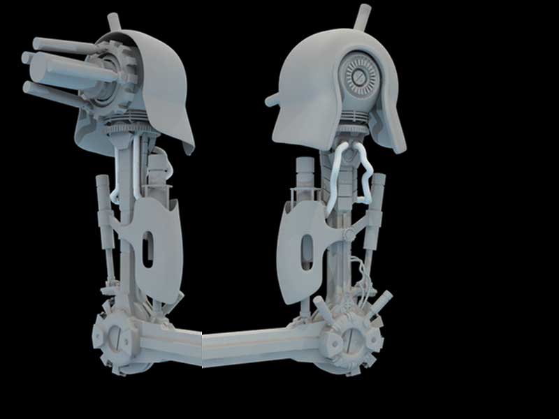 Ahora que me quedo mirando las dos cabezas. ¿y si lo haces bicéfalo? Me gusta cómo te va quedando. A ver cómo solucionas las piernas (para mí siempre ha sido la parte más complicada de diseñar para un robot de este estilo).