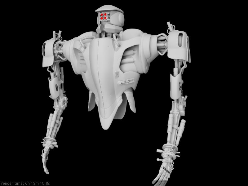 Muy chulo, aunque sigo pensando que podías hacer un bot de cuerpo entero, pero es tu trabajo. Me parece que va tomando forma con un modelado bastante interesante, aunque los pistones del codo, si es que son pistones, me parece que quedan un poco raro.