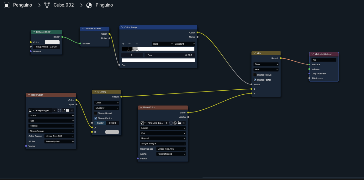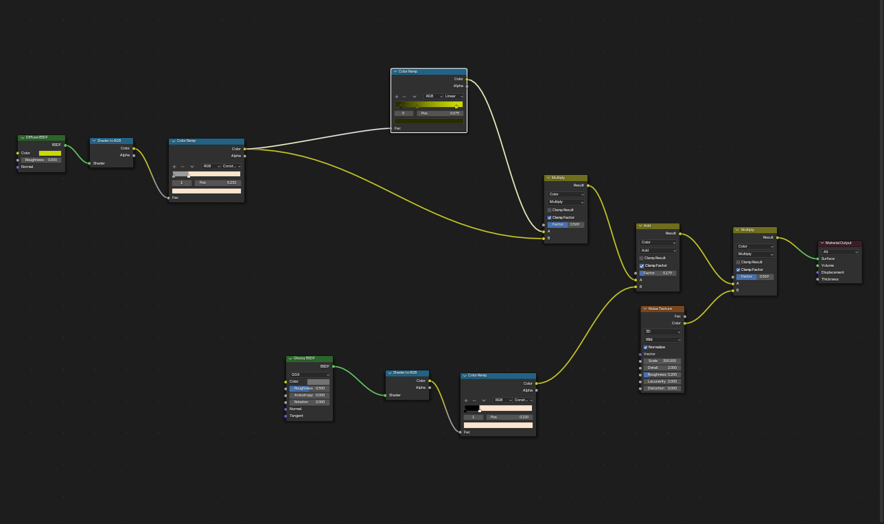 Diffuse BSDF/Shader to RGB/ColorRamp/(resto del shader)
