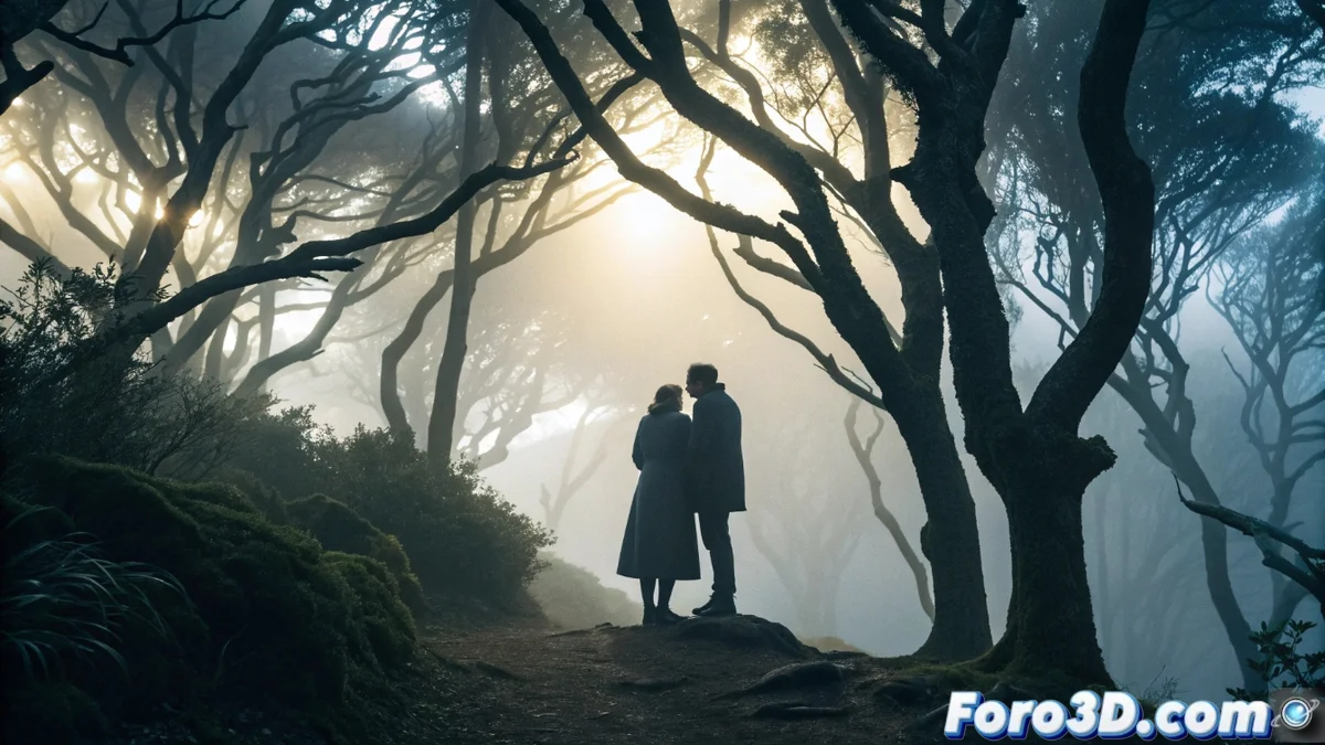 Empujados por una fuerza que no comprenden, Gara y Jonay huyen hacia las alturas del Garajonay, donde la niebla se enreda en sus ropas como garras fantasmales. Cada paso hacia la cima es un descenso más profundo en la locura, con sombras que se mueven entre los árboles y susurros que los llaman por sus nombres. En la cumbre, rodeados por una oscuridad que parece devorar la luz, toman la decisión final, no como un acto de amor, sino como un sacrificio a una maldición que los ha perseguido desde el principio. Sus almas quedan atrapadas en un limbo de agonía perpetua, donde el eco de sus últimos suspiros se mezcla con el viento.