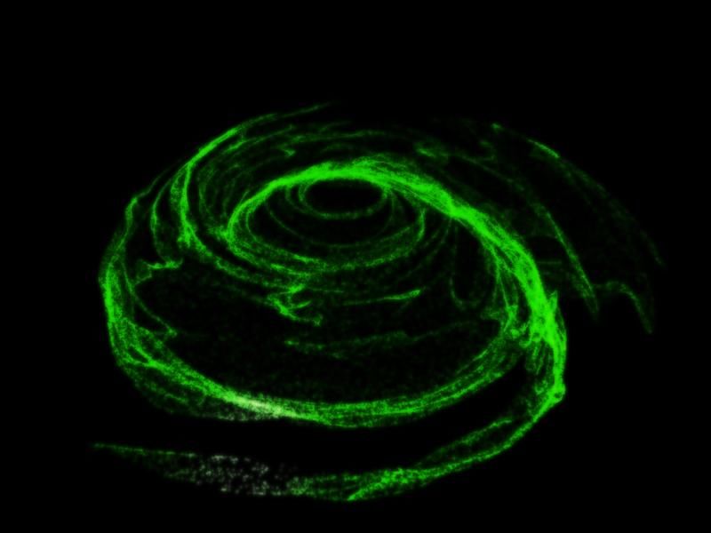 Birkov, puedes probar a asociar una fuerza drag que mantiene las partículas unidas entre sí tanto como quieras (subiendo más o menos los parámetros) y darle más fuerza a la turbulencia. Prueba a bajar también la escala y frecuencia a ver qué tal. Saludos.