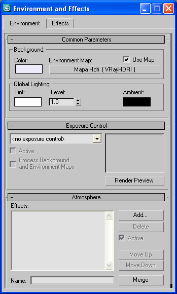 Pues veras, el caso es que el sistema que trato de poner en práctica es la de, coloco 2 luces. Un Vray light con Skyportal y el environment activado en 1, y una luz que se usaré como luz solar. Ambas en mult 1.0.