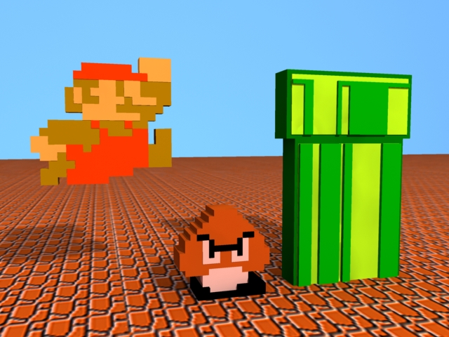 Pues a mí me gusta la idea, es original. Creo que su intención es hacer una réplica del 2d en 3d, pero pixelado como en el juego, de hecho, si te fijas la tubería también es un cubo, pero ha jugado con los materiales para darle el look del juego y ese efecto de brillo que intentan darle en el juego, creo que bien hecho puede quedar bien.