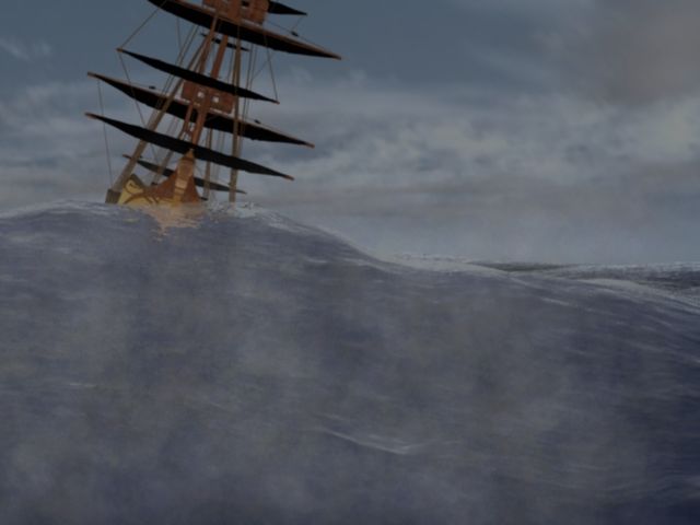Que coincidencia, hace unos tres meses terminamos en el curre un proyecto de dos meses (poco tiempo como siempre), sobre una batalla de galeones, la batalla de grande, eran 15 minutos de animación con su agua y todas esas pijadas, también había peña, fuego, cañonazos, velas rompiéndose, barcos chocando y todo lo que tú comentas, bueno que si necesitas algo pídelo que de barcos controlo un poco además son de la misma época, por cierto, esas velas están un poco negras. Saludos.