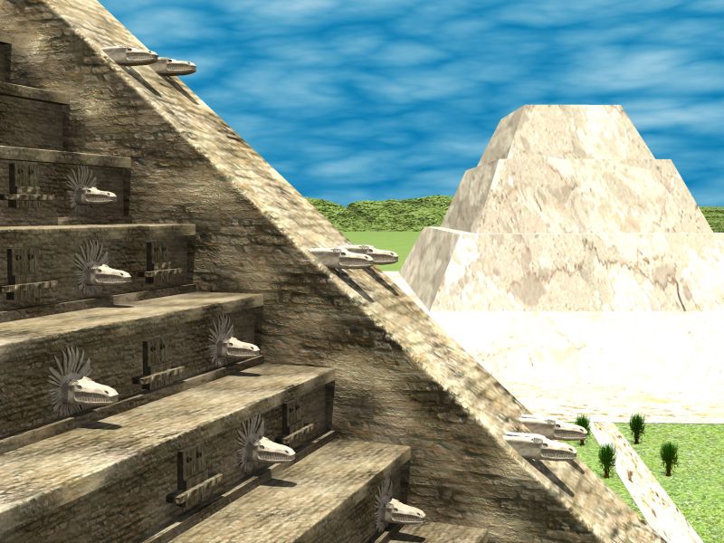 Pues esa pirámide solo es para mostrar la idea de dónde ira la segunda, a la del frente no la voy a romper porque es nueva, así figura en un libro donde muestran la vida azteca antigua, todo lo demás lo tendré muy en cuenta, muchas gracias a todos.