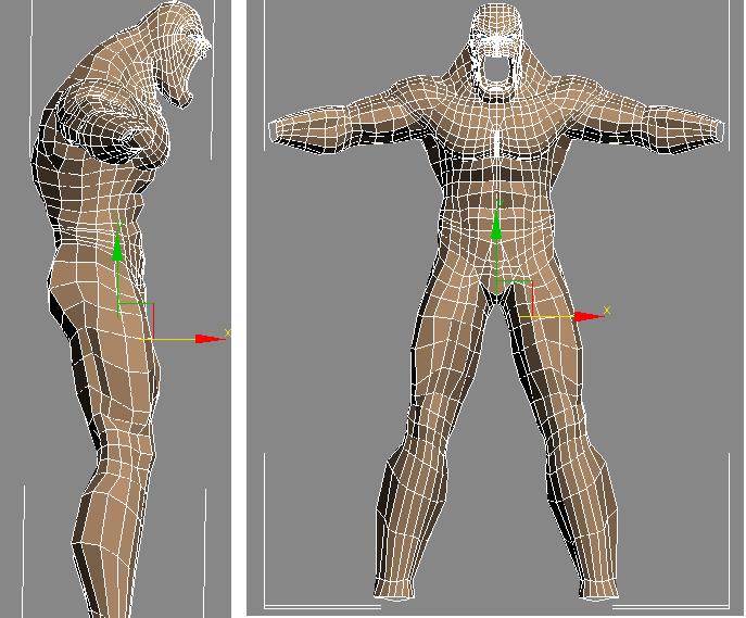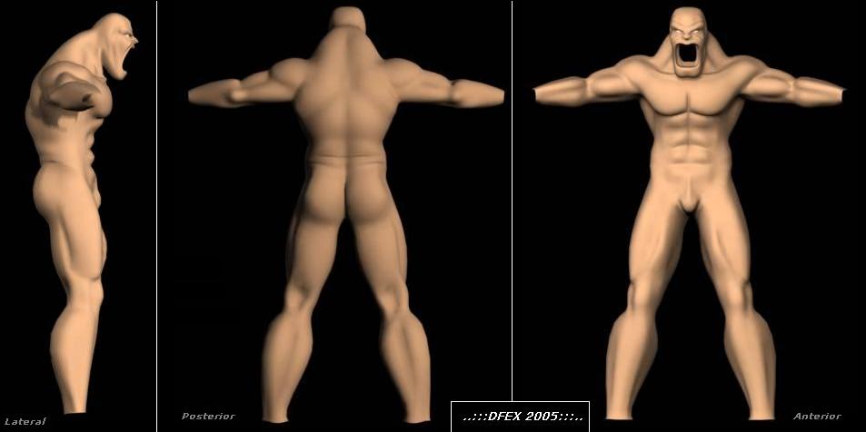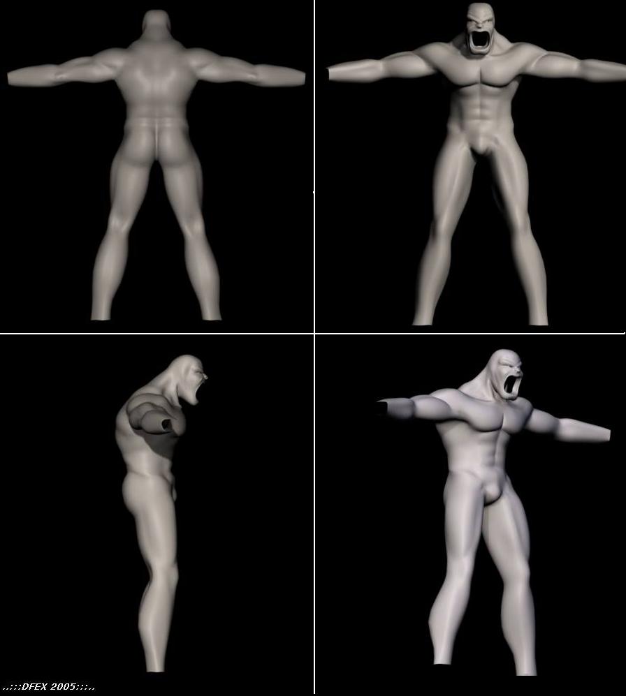 No parece un hombre, los músculos del cuello no son correctos, los antebrazos son cortos, los brazos en general, la boca desproporcionada, los abdominales parecen todos del mismo tamaño y en la vista lateral se ven de punta, a la espalda le falta detalle, aunque está bien, me gustan los pliegues que hay entre espalda y culo, el hueco poplíteo lo veo muy grande también, al igual que los gemelos que sobresalen más que el muslo, así como la separación es excesivo y los veo muy largos, pero bueno mal del todo nosta.