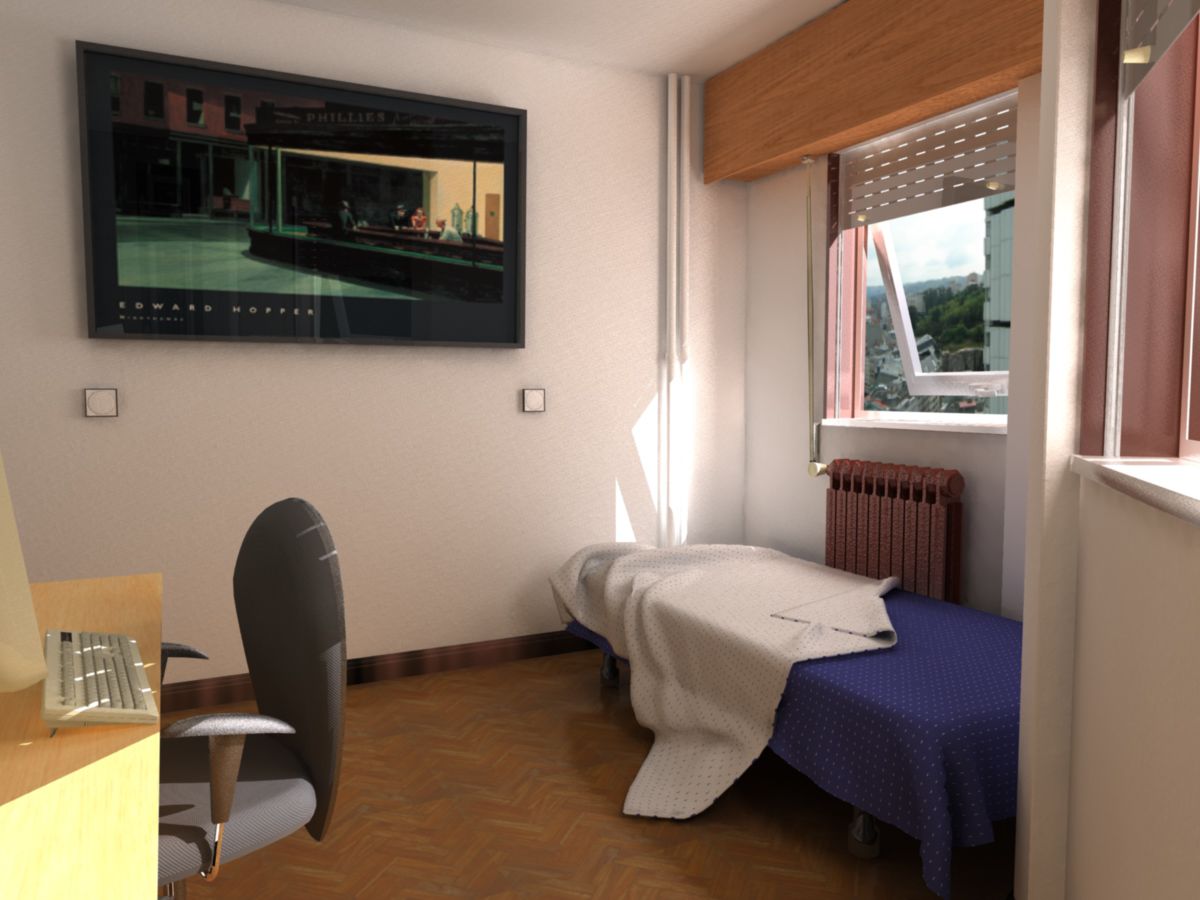 Esta es una prueba de iluminación con Mental Ray, es mi habitación (más o menos) y he intentado hacer una iluminación interior realista.