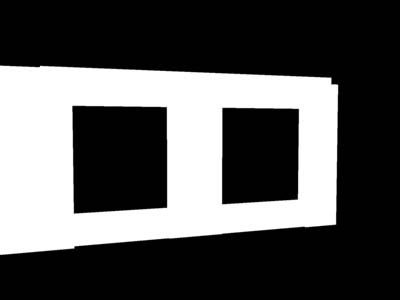 2.- Luego se renderiza otra parte de la escena. En este caso, el propio Max, calcula las zonas donde hay objetos y donde no (pulsa la esfera blanca y negra que aparece en la ventana donde se muestra el render). Como ves es una imagen en tonos de grises (generalmente sólo blanco y negro), denominada canal alpha (hay diferencias entre lo que es una máscara y un canal alpha, pero digamos que el funcionamiento es básicamente el mismo). El canal alpha le indica al render de las cajas dónde debe ser transparente y dónde no. Para guardar el canal alpha necesitas utilizar un formato como el, tga, porque permite el guardado de este tipo de canal (modo 32 bits).