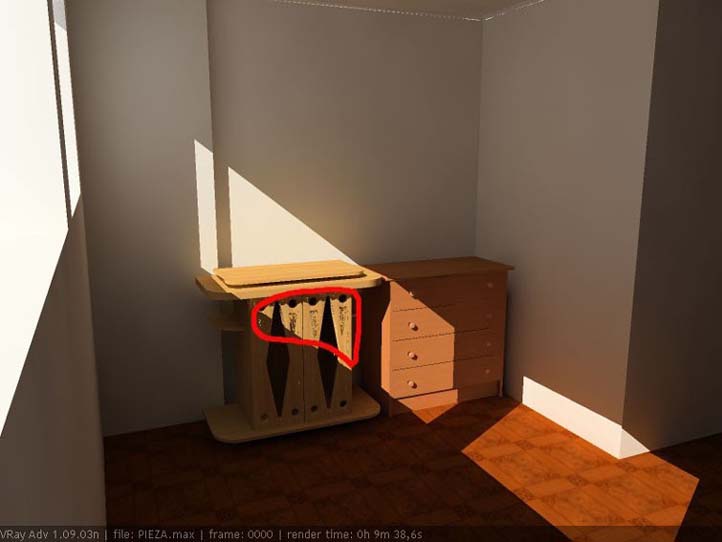 Hola a todos como están, bueno estoy modelando un dormitorio desde AutoCAD y que está importado a 3dsmax6, con el pretendo iluminar y hacer todos los renders finales en el motor de render Vray, pero al hacer las primeras pruebas veo que hay errores de tipo material que no entiendo cómo solucionar, y que prefiero solucioanarlos antes de tiempo, y para eso, véase imagen pieza1a y pieza2a, hay marqué con un borde rojo en donde se localizan los errores con distintas posiciones de la cámara.