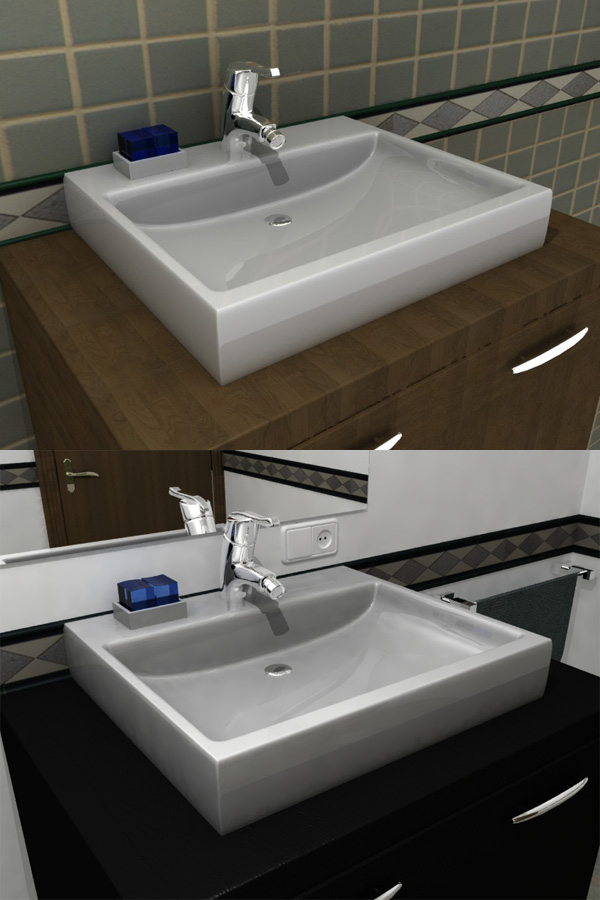 Yo diría que a la toalla le falta un poco de volumen, y el grifo me parece demasiado brillante. ¿y no sería peligroso tener el enchufe tan cerca?