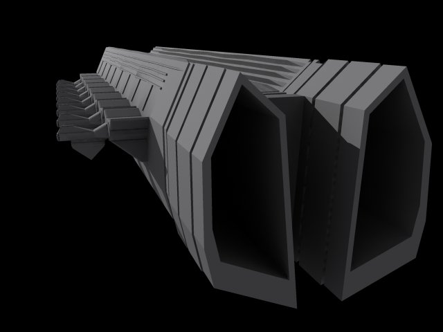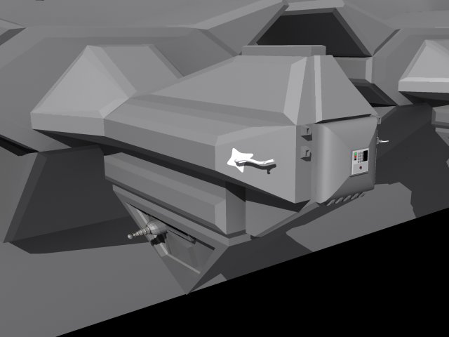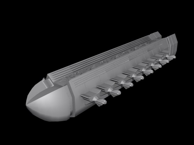 Hola, comparto algunas imágenes y las críticas son bienvenidas, no estoy trabajando una enormidad estilo la estrella negra por los tiempos de render y tamaño final de la aplicación flash, pero estoy intentando hacer algo atractivo, la animación va de un robot que despega de la misma nave y se dirige a uno de sus compartimentos laboratorio, entra en el mismo y llega a un Garage final donde estoy pensando bien cómo hacer el menú. En vista esta un robot más grande posiblemente de apariencia femenina o máquinas de laboratorio.