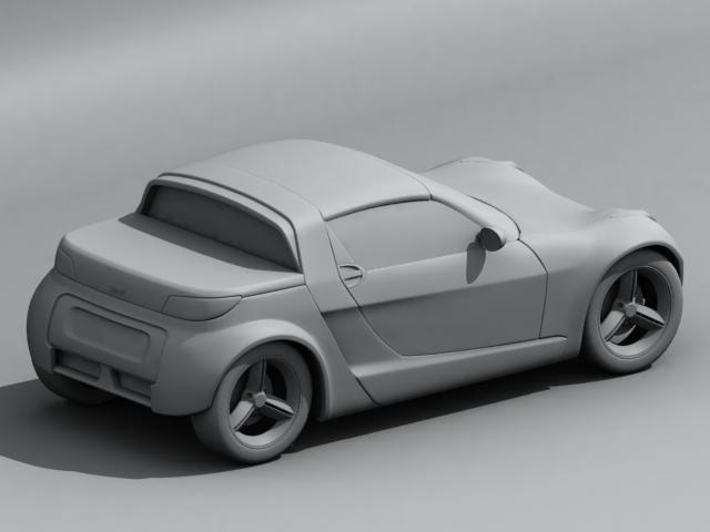 A las buenas. Os pongo unas imágenes de otro coche que estoy haciendo, un smart roadster (un coche que me resulta bastante curioso). Todavía le quedan detalles por hacer (como las llantas de las ruedas, interiores y accesorios), pero mi objetivo es integrarlo en alguna escena real, a ver qué tal queda. Saludos.
