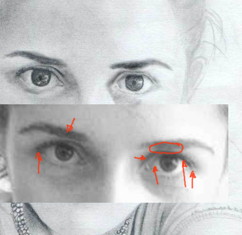 Usted tiene toda la razón y es muy buena su apreciación. El tono de la cara debo profundizarlo más aun, estoytrabajando en eso, y aún más, estoy cambiando el tamaño de los ojos por, aunque los oscuresca más El problema continuara. Los ojos están mal dibujado para su cara. Me da algo de rabia tener que comenzar desde el principio después de tantas horas trabajando en ellos, pero es mejor así porque estaré eliminado un error que más tarde alguien vendrá a decírmelo. Por el otro lado me siento feliz de poder ver el error porque puedo llevar mi trabajo a una mejorperfección, como debe ser. Un saludo y un fuerte abrazo y gracias por su muy buena apreciación.