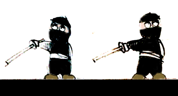 El ninja está genial. Un verdadero tipo duro. Tampoco está mal el hombre pegado a la nariz gigante.