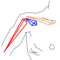 Las proporciones y longitudes, están hechas a ojo. El hombro tiene origen cerca del centro del pecho y la clavícula en la base frontal del cuello.
