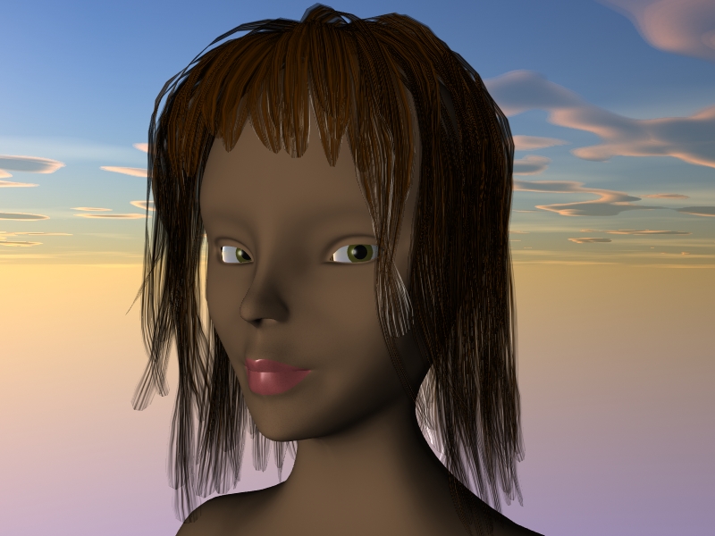 Bueno, poco a poco va cogiendo forma, la chica ya tiene orejas, párpados mejor definidos y bueno, aunque en la imagen no se ve, tiene también vestido y zapatos que se irá viendo según añada detalle a los pies y le haga unas manos, de momento sigo poco a poco con el pelo y arreglando un poco la cara. Alguien me puede decir cómo puedo aplicar las texturas del pelo para que quede más o menos realista? Sigo pidiendo opiniones del modelo. Gracias.