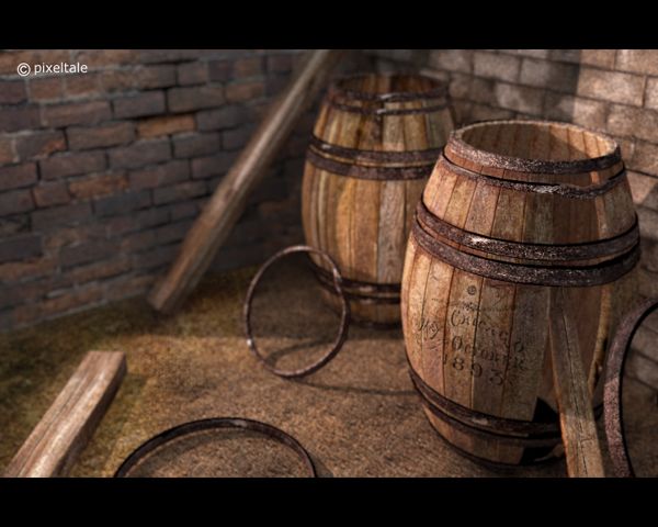 Hola. Puede que al estar la cámara en picado de esa sensación. Fijaté en el tamaño de los ladrillitos, tiene escala correcta frente al barril. Cierto que si colocamos la cámara abajo enfocando los barriles daría mayor sensación de tamaño.
