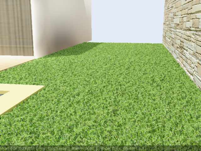 Todos los elementos me aparecen como flotando en el espacio, y no pegados en el piso, como lograr que eso no pase? Otro problema que tengo es que no logro crear un material que me simule casi realmente una tela para este, que además me sirva para la cortina, y el otro problema, es con el displacement del pasto, he hecho todo lo que aparece en los tutoriales sobre este, pero nada, el pasto sale horrible, no entiendo que puede ser.