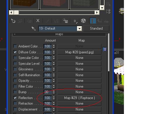 Mira, aquí te pongo una muestra, del vidrio que te decía uno está simple, o sea, le puse en maps, como te había dicho un RayTrace en reflection, y lo puse opacity en 40, en el otro le puse en maps en Bump un noise, mira es algo simple lo que hice, pero se nota el reflejo y la transparencia.