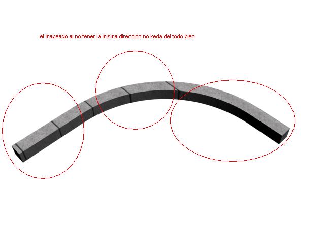 Hola, ¿cómo puedo texturizar un bordillo con las esquinas curvas de tal forma que me quede la típica textura de bordillo con una piedra tras la otra? He probado a aplicarle un mapeado de caja como suelo hacer con casi todo, pero en la prte de la curva las líneas que separan una piedra de bordillo de la otra no están correctamente mapeadas. He probado también a mapearlo con cara, pero me salía algo extremadamente raro (modelo en AutoCAD) y he estado probando con otros de los parámetros del UVW map.