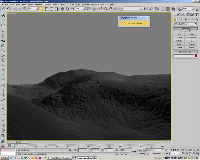 Vaya tan difícil es de creer tíos? Hostias, un plano con bastantes segmentos y un mapa de desplazamiento, eso las montañas. El mar, un plano con un material de agua que pille en un tutorial de 3dcafe, y las nubes un bitmap de toda la vida, colegas, estáis emparanoyaos.