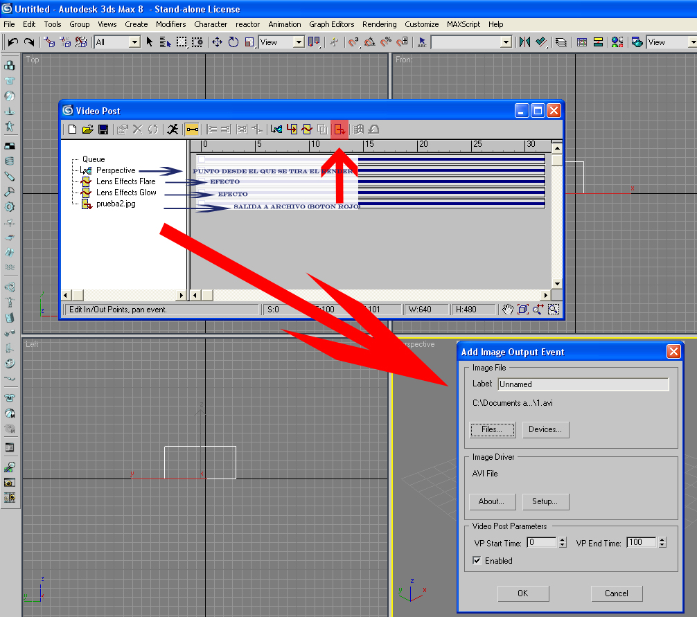 Hola a todos, he creado una explosión, con un SphereGizmo, partículas, video mensaje y algunos efectos, mi problema es que para que en el render salga todo, tengo que hacer el render desde video mensaje, pero no puedo guardarlo en un archivo externo (.mov, avi.) y lo he intentado te todas maneras y no e sido capaz, si alguien me pudiera ayudar.