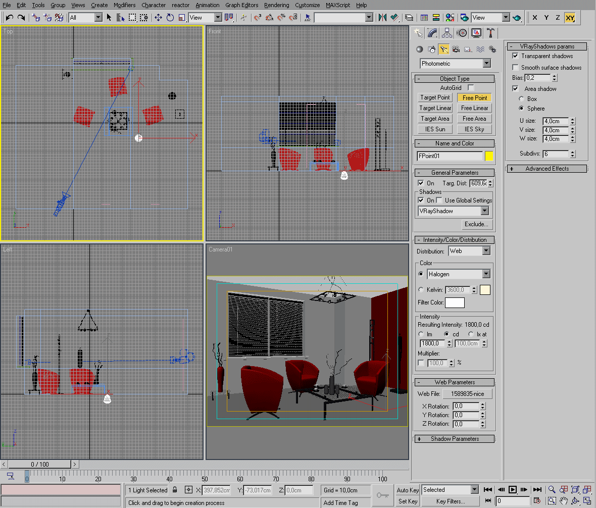 Creas una luz fotométrica, y como tipo de distribución eliges web (red en castellano). El archivo.ies te marca la manera de distribuir la luz que tiene la fuente. Esos datos.ies son muy usados en proyectos de iluminación, ya que, corresponden a tipos de luces que se pueden comprar en el mercado.