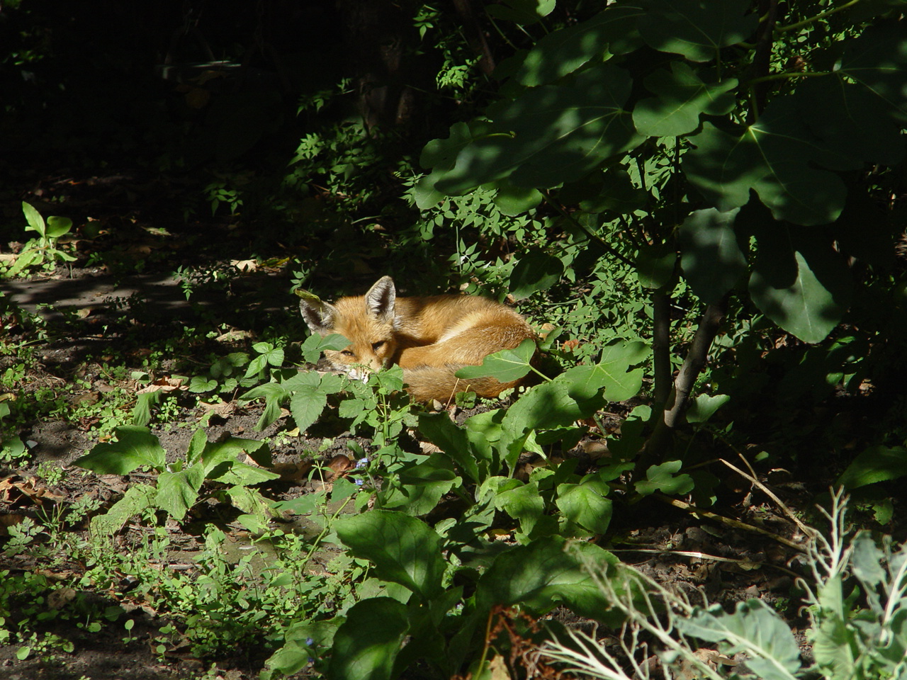 Aquí os dejo una fotografía del zorro tranquilamente descansando en el jardín. Saludos.
