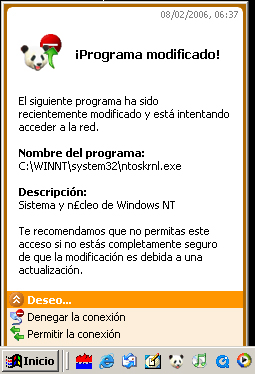 Me sale este mensaje coincidiendo con actualizaciones de Windows XP y en un ordenador que tiene el panda (ya sí que es una, pero lo pilló con la ADSL y todavía no he tenido tiempo de cambiarlo).