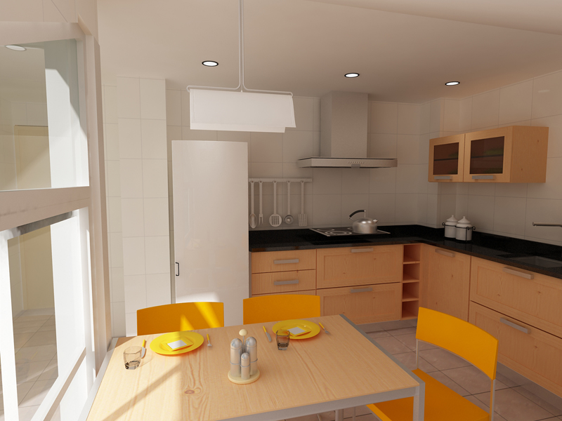 Hola a todos/as: Me presento al mensaje con este render de una cocina. A ver qué os parece y en que se podría mejorar. Gracias.