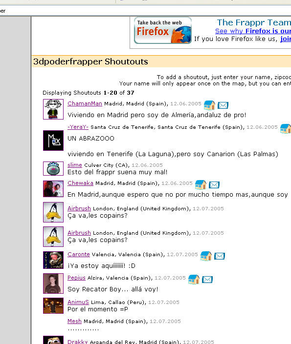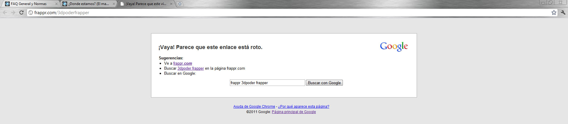http://www.frappr.com/3dpoderfrapper. Poniendo eso en tu barra de navegación, y no pinchando el enlace del comienzo deberías llegar derechito al mapa. Por lo menos a mí me pasó así.