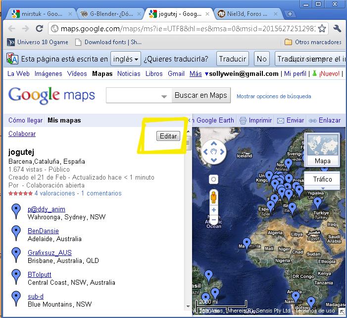 Por si a alguien le interesa, hay un nuevo -blender 3d users world map- Para los que ya tienen cuenta en Google o en hotmail. http://maps.google.com/maps/msíie=ut...796fb84c0c42ca. http://blenderartists.org/forum/showthread.php?t=209333.