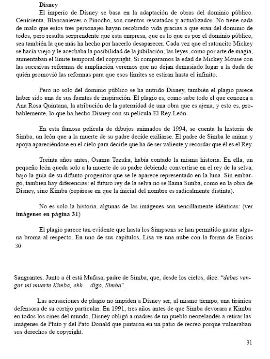 Cuando ataco a Disney no estoy atacando al viejo Walt, que en paz descanse, sino a la pandilla de ejecutivos que actualmente lleva las riendas de su imperio, esos tipos que protestan por la violación de su copyright cuando las maestras del jardín de infantes decoran el aula o las paredes del patio con el ratón Mickey y el Pato Donald, y al mismo tiempo plagian a los animadores nipones, o les compran los derechos de su productos para guardarlos en un cajón, para evitar que el público norteamericano descubra que hay otras alternativas en dibujos animados aparte del imperio Disney.